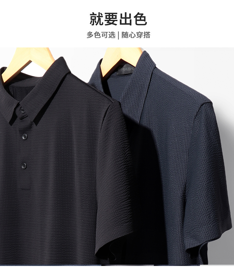 【气泡冰凉透气polo衫】 夏季纯色翻领T恤短袖 吸湿打底上衣