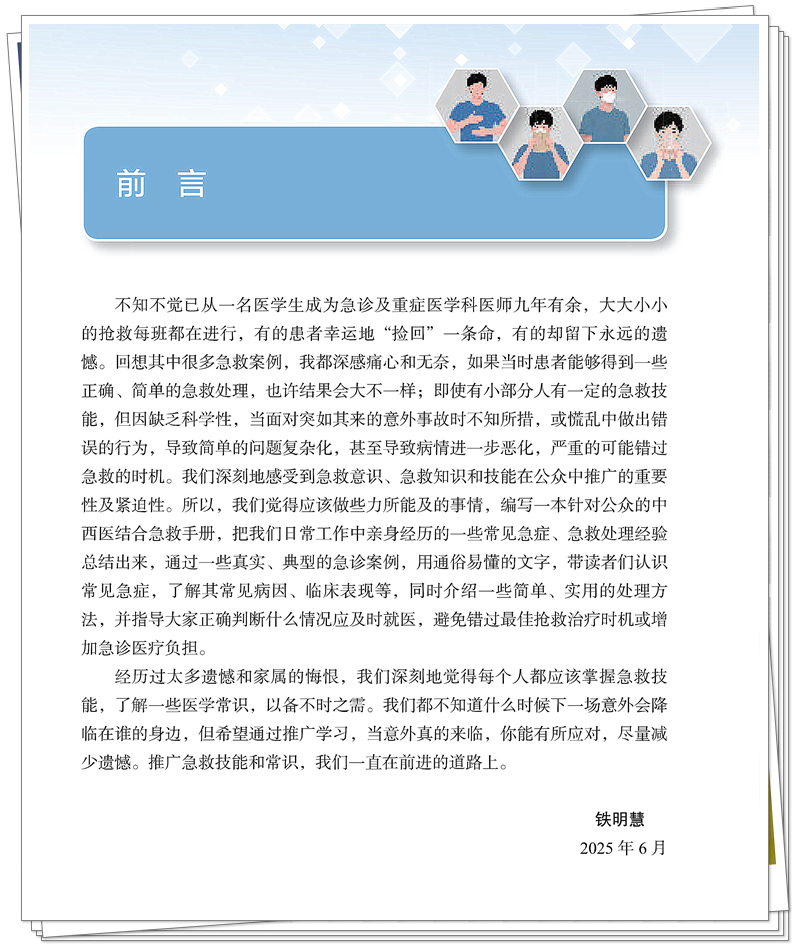 《中西医急救手册》为云南中医院急诊团队创作,均为一线急诊医生,所选案例贴近临床实际,是百姓生活中比较常见的急证。