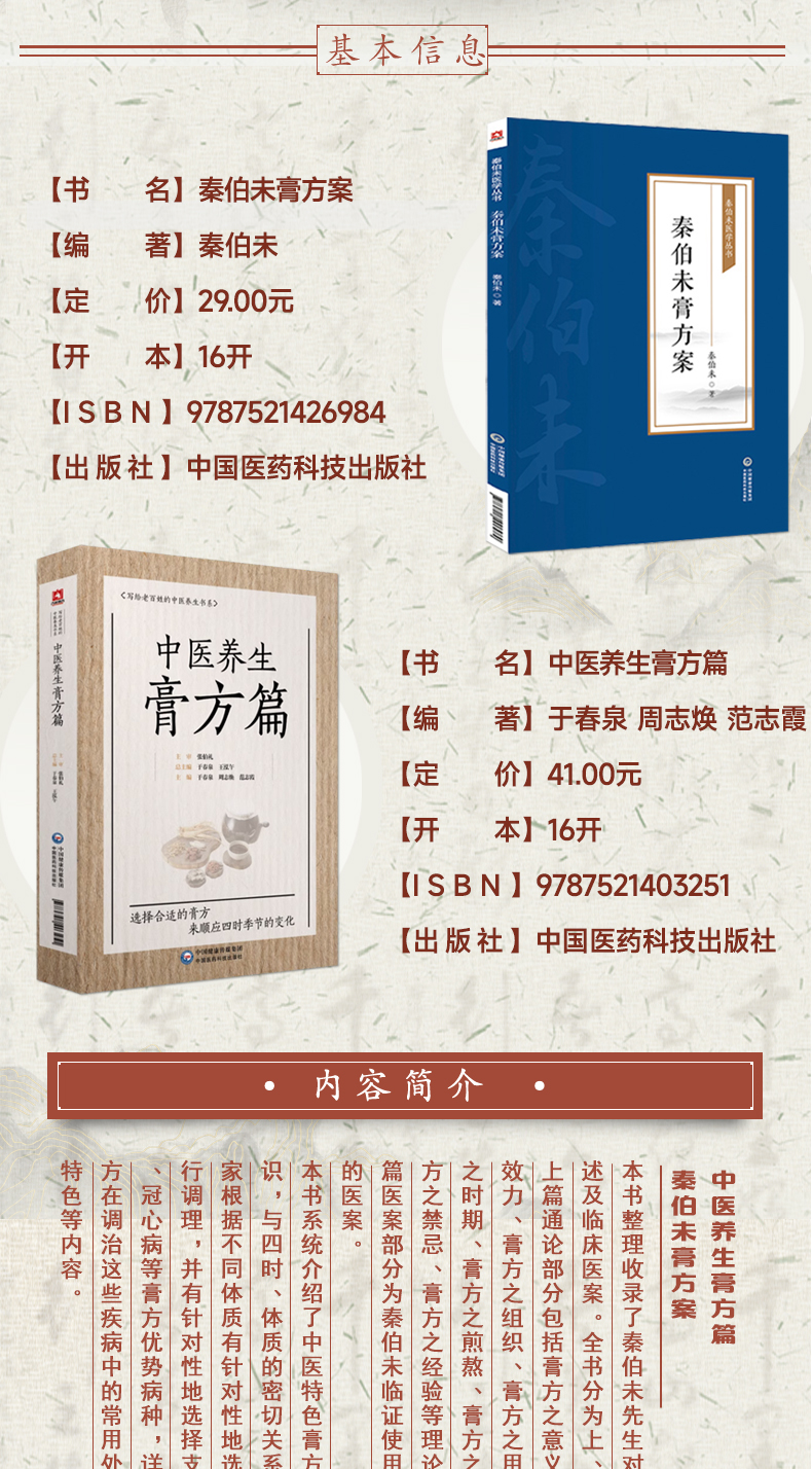 全2册 中医养生膏方篇+秦伯未膏方案 秦伯未医学丛书 膏方煎熬服食禁忌经验膏方治疗案秦之济先生膏方医案 中国医药科技出版社