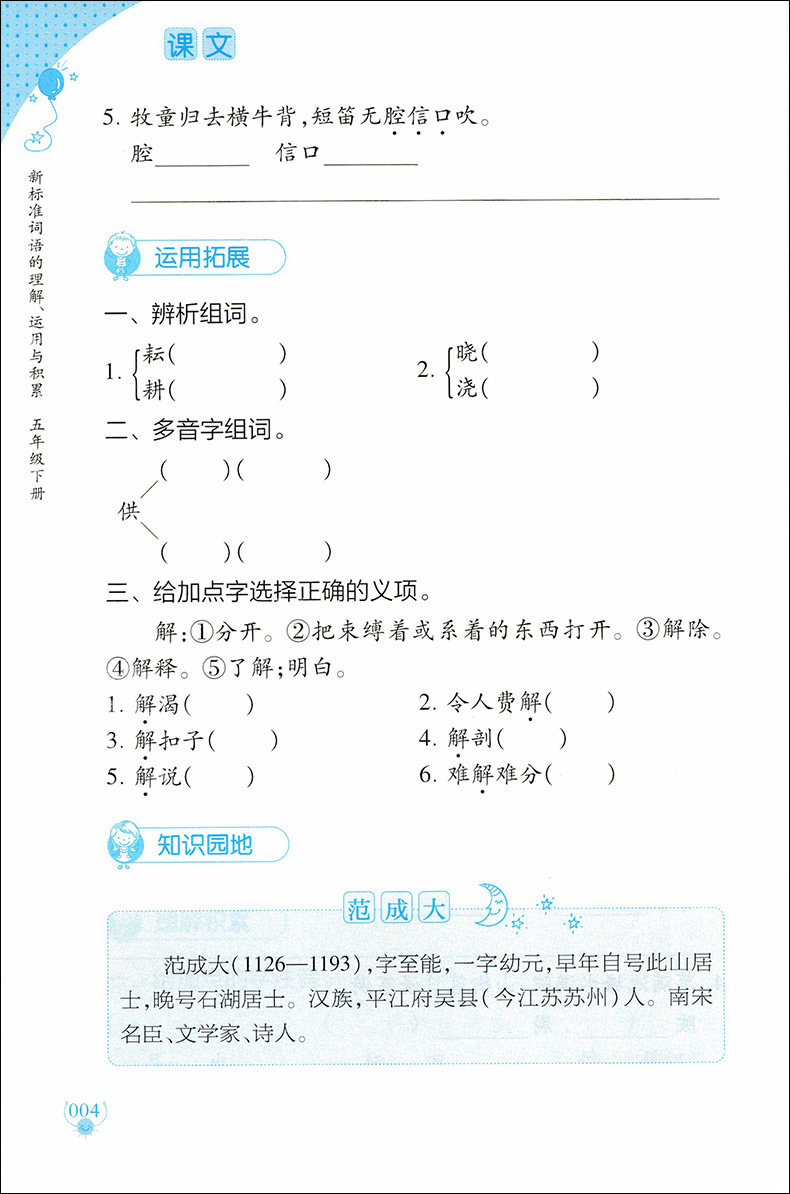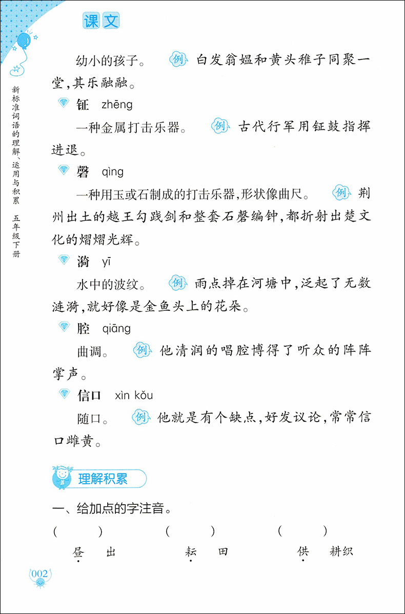 部编版 新标准词语的理解运用与积累 5年级下册/五年级下第二学期 上海教育出版社 统编语文教材配套小学课本同步辅导阅读书籍