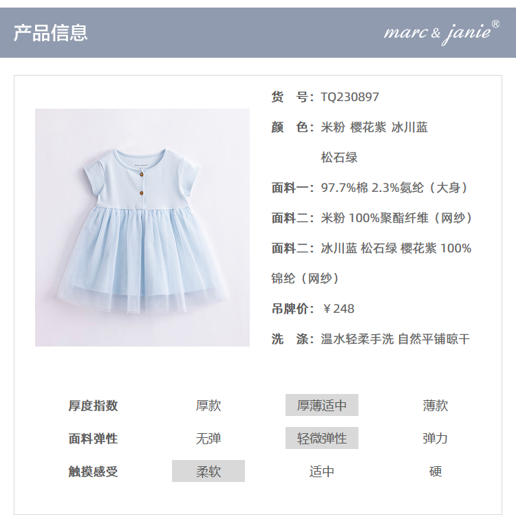 DD马克珍妮夏装新款 女童弹力针织花边网纱连衣裙230897