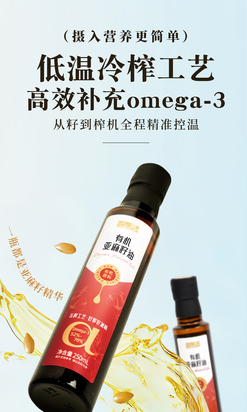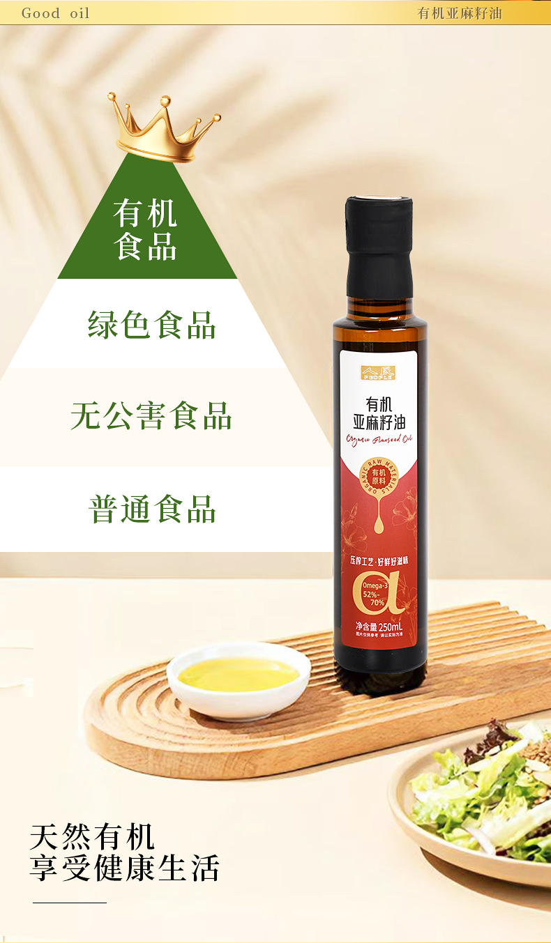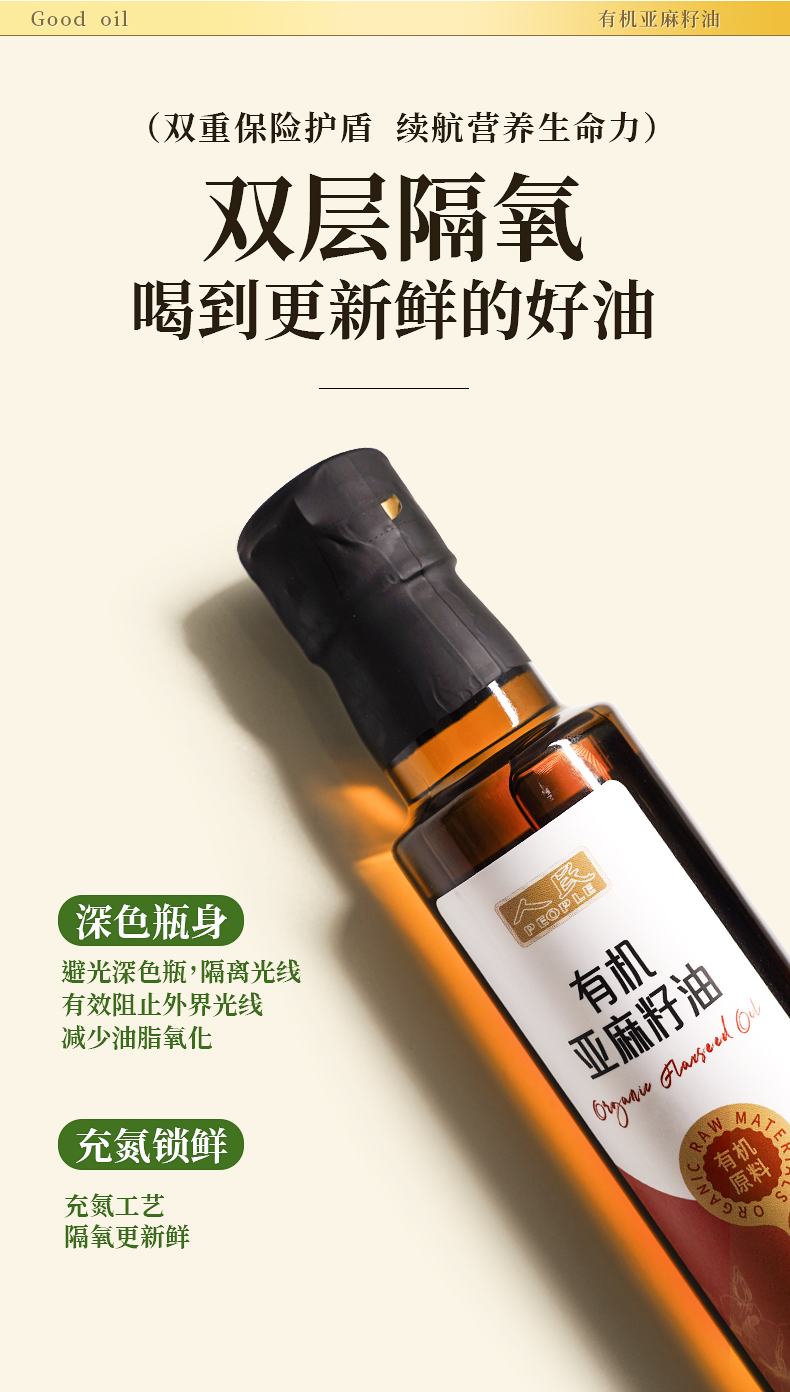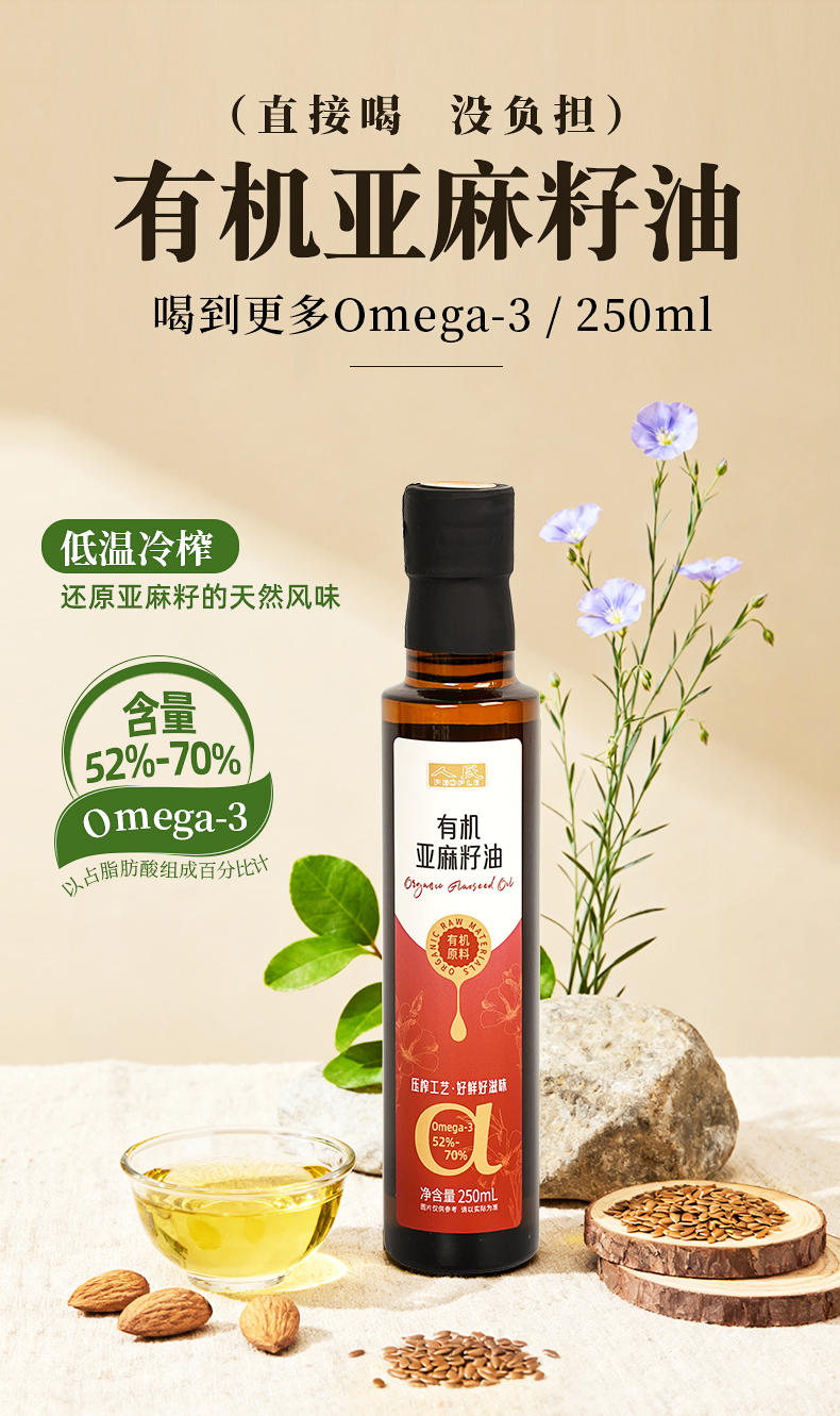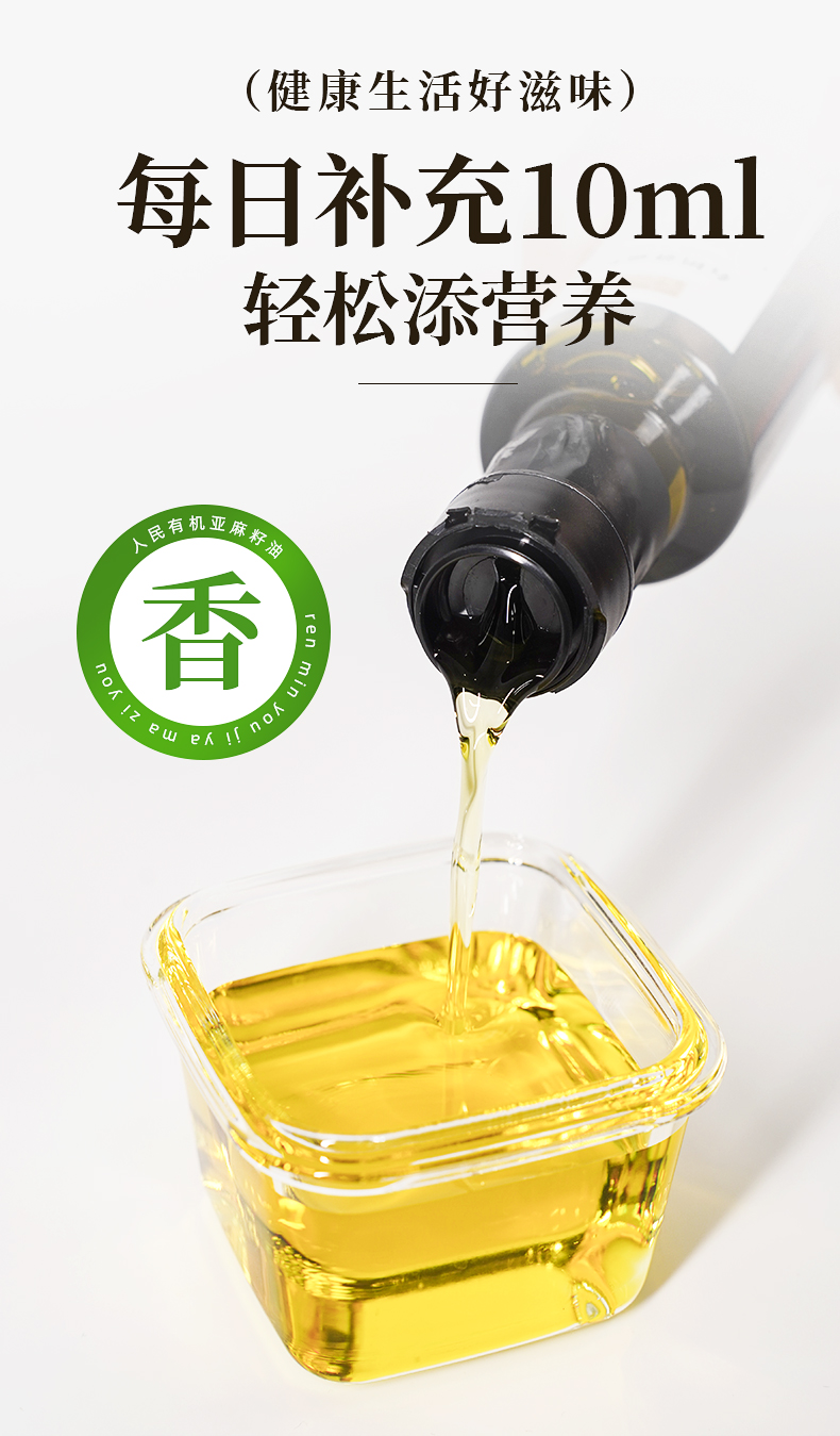 人民有机亚麻籽油250ml冷榨一级食用油口服拌酸奶调味