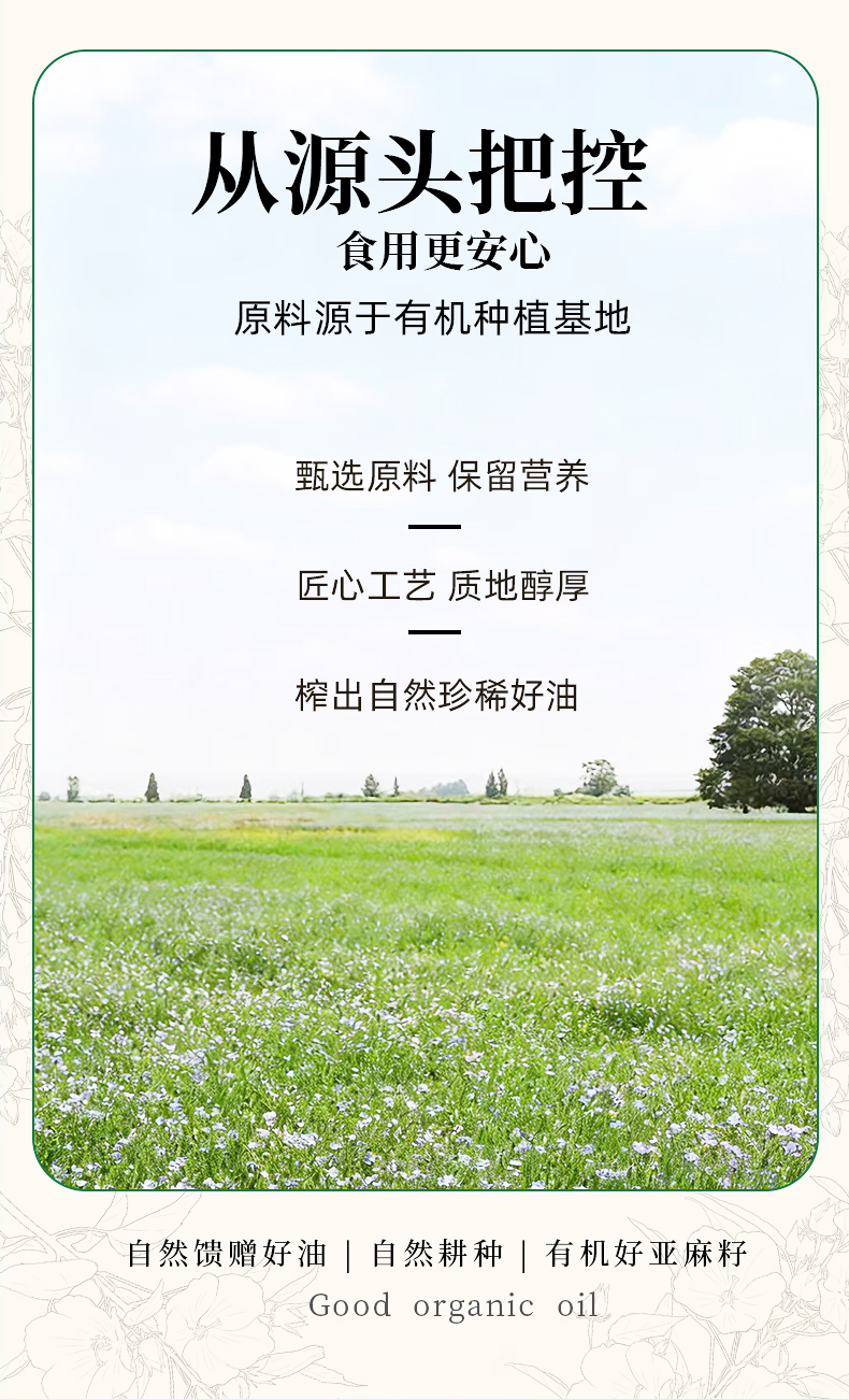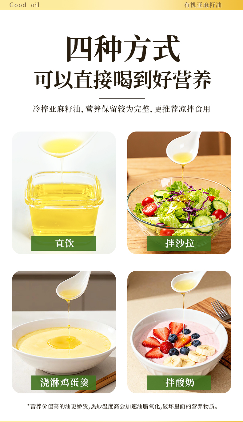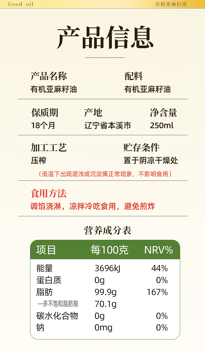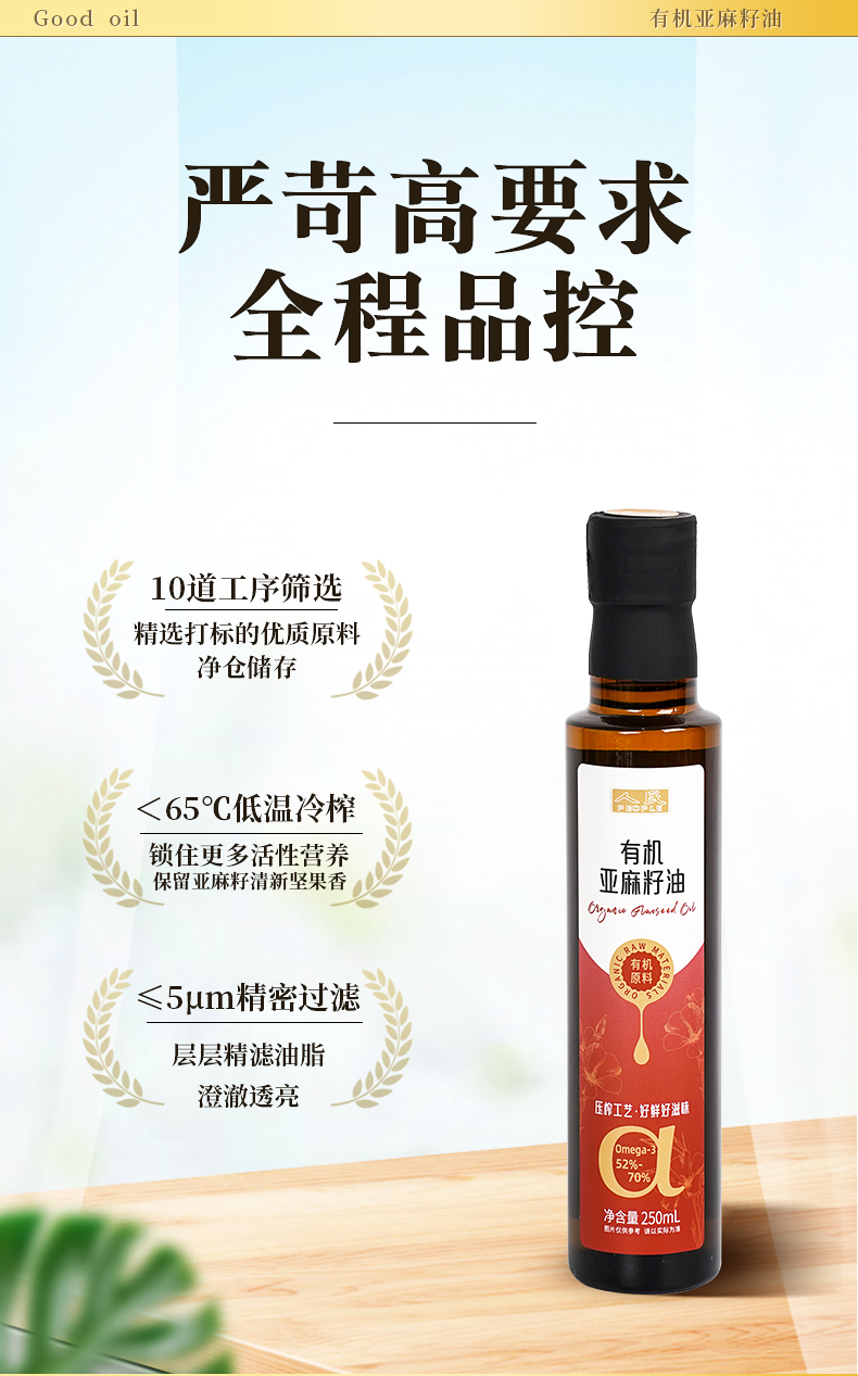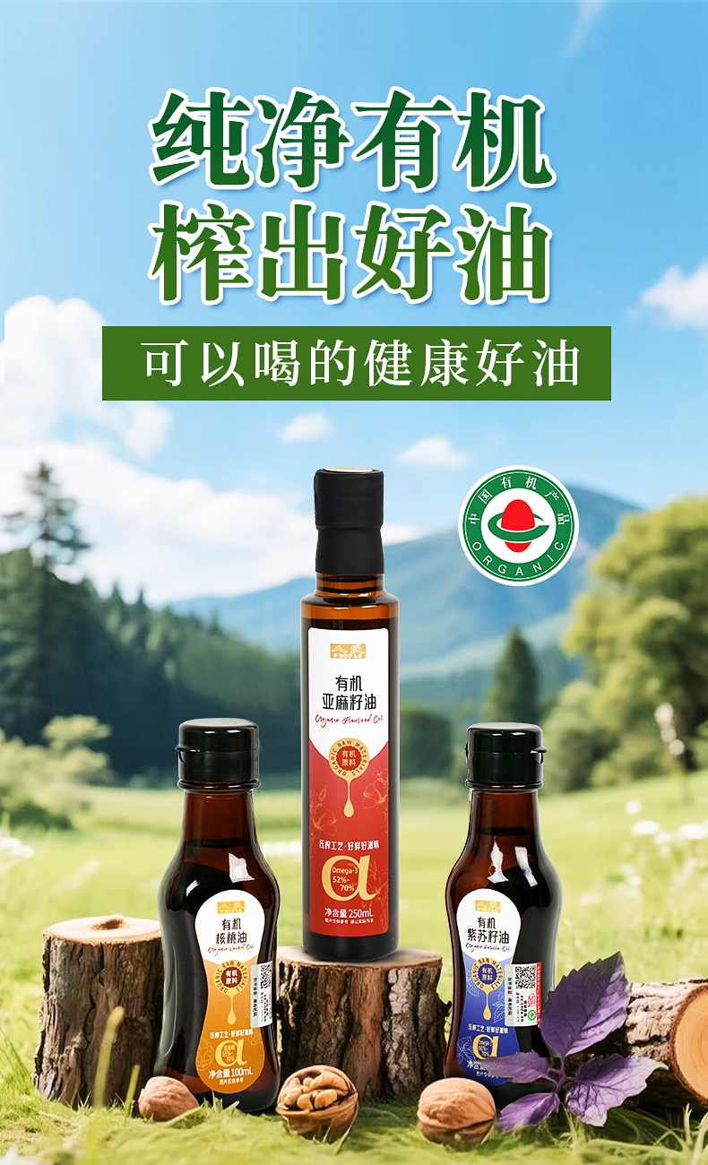 人民有机亚麻籽油250ml冷榨一级食用油口服拌酸奶调味
