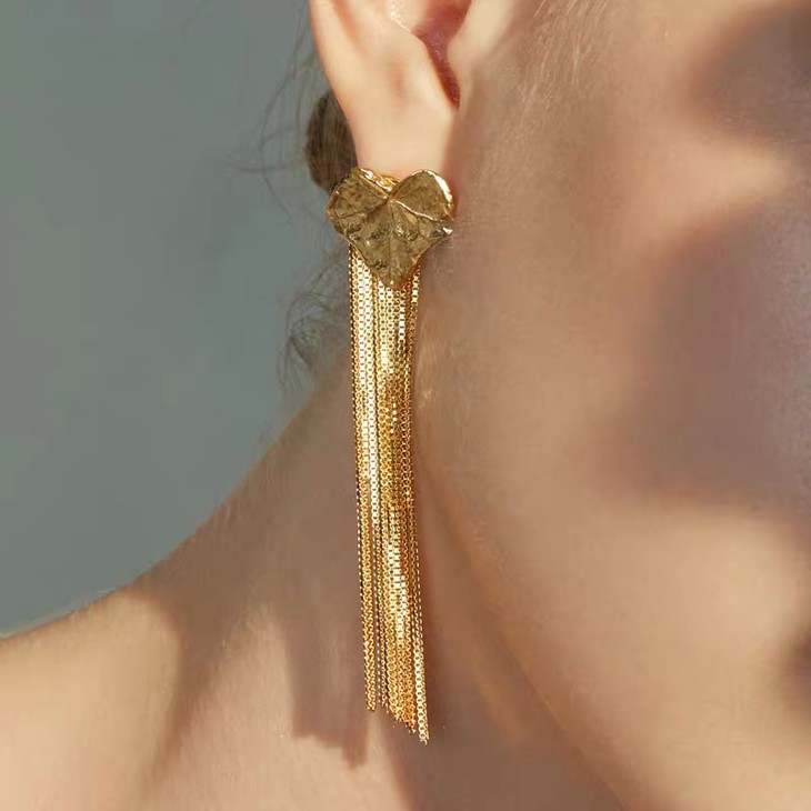 叶片流苏耳环