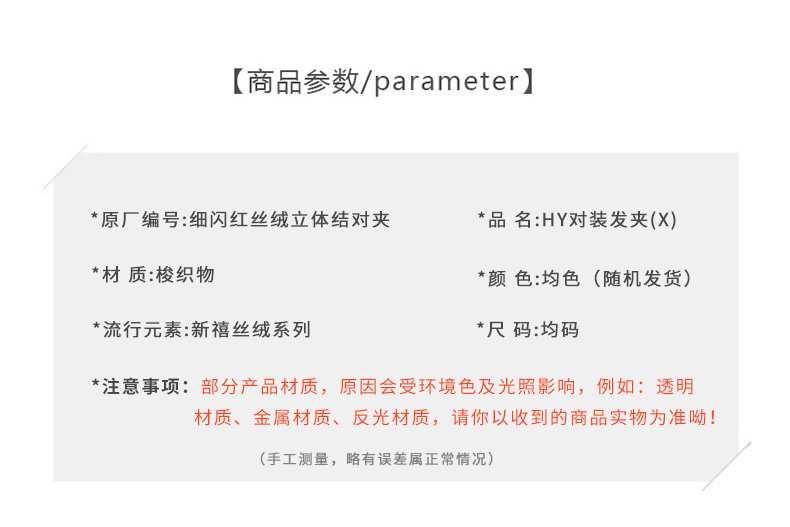 HY细闪红丝绒立体结对夹-纪念日百货门店同款167795319