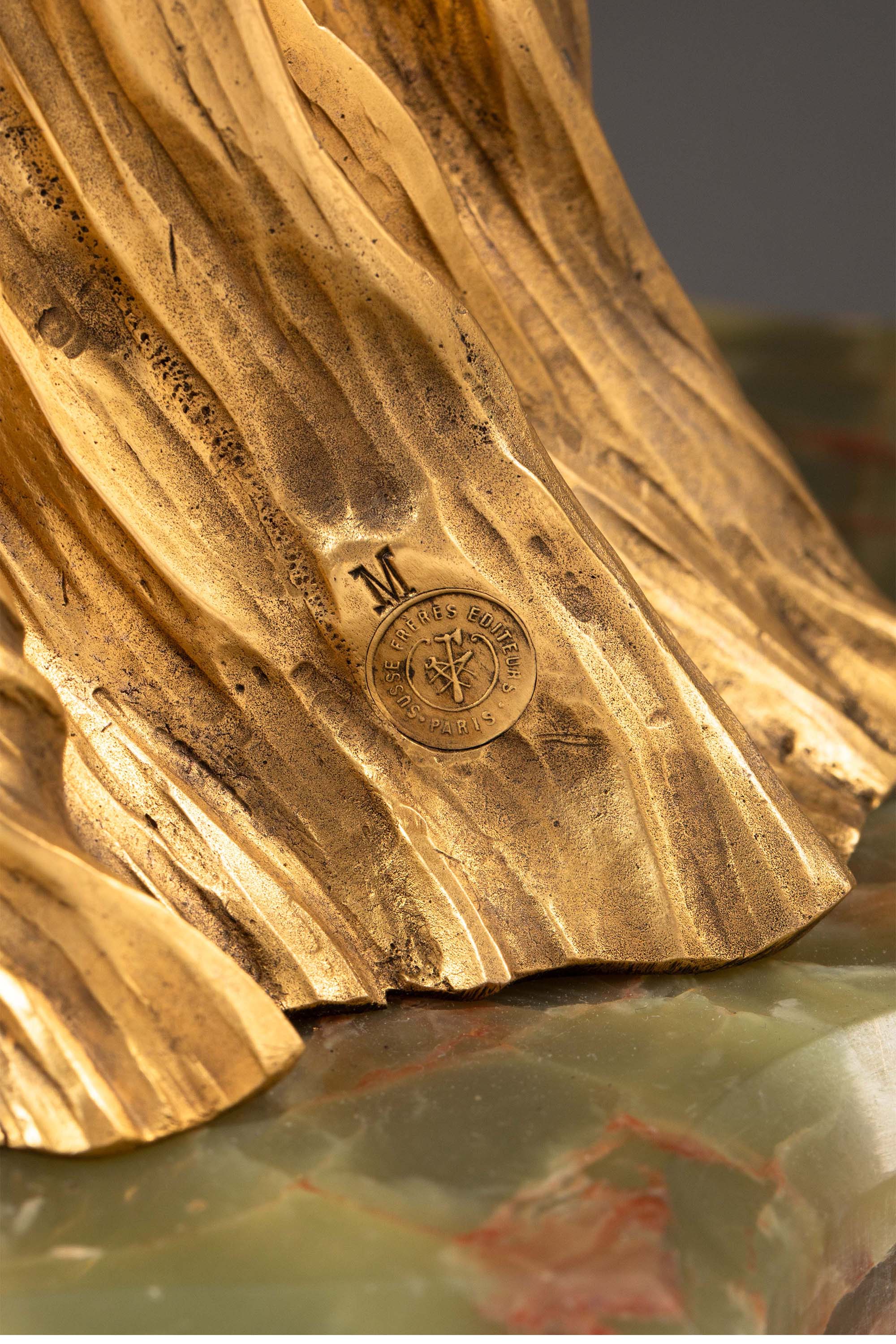 独角鹿西洋古董法国雕塑艺术家A.Léonard签名创作Susse Freres工坊出品飘带舞者系列缟玛瑙底座青铜鎏金古董雕塑艺术摆件