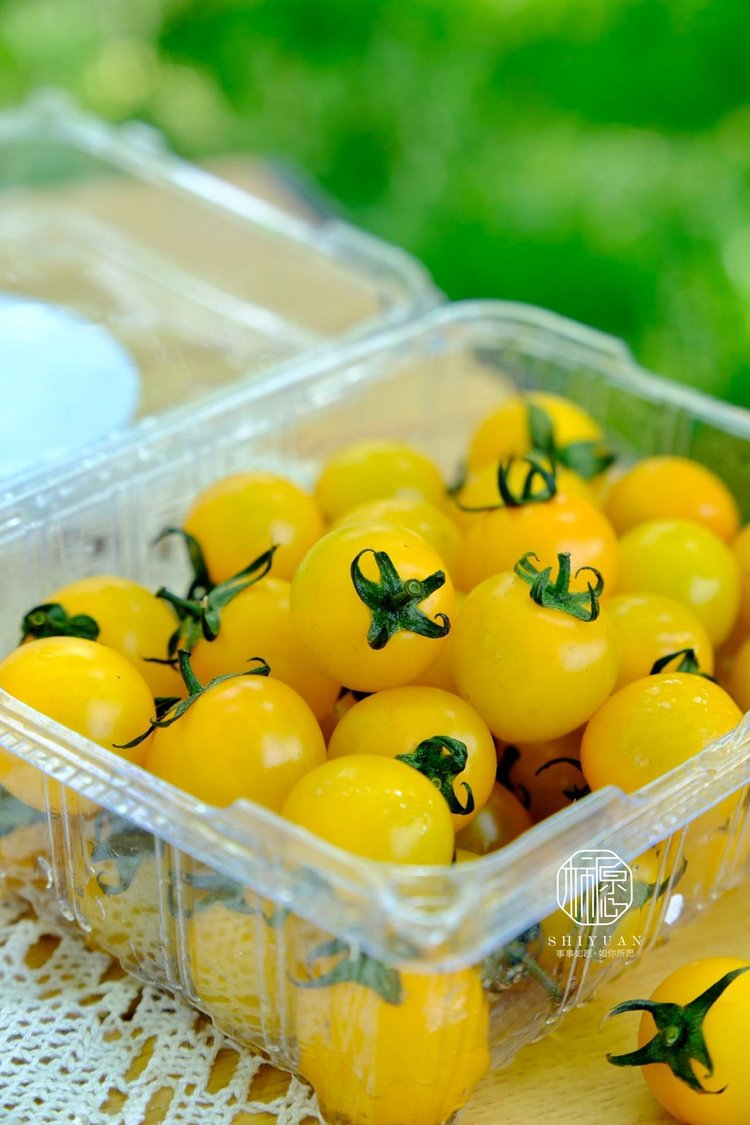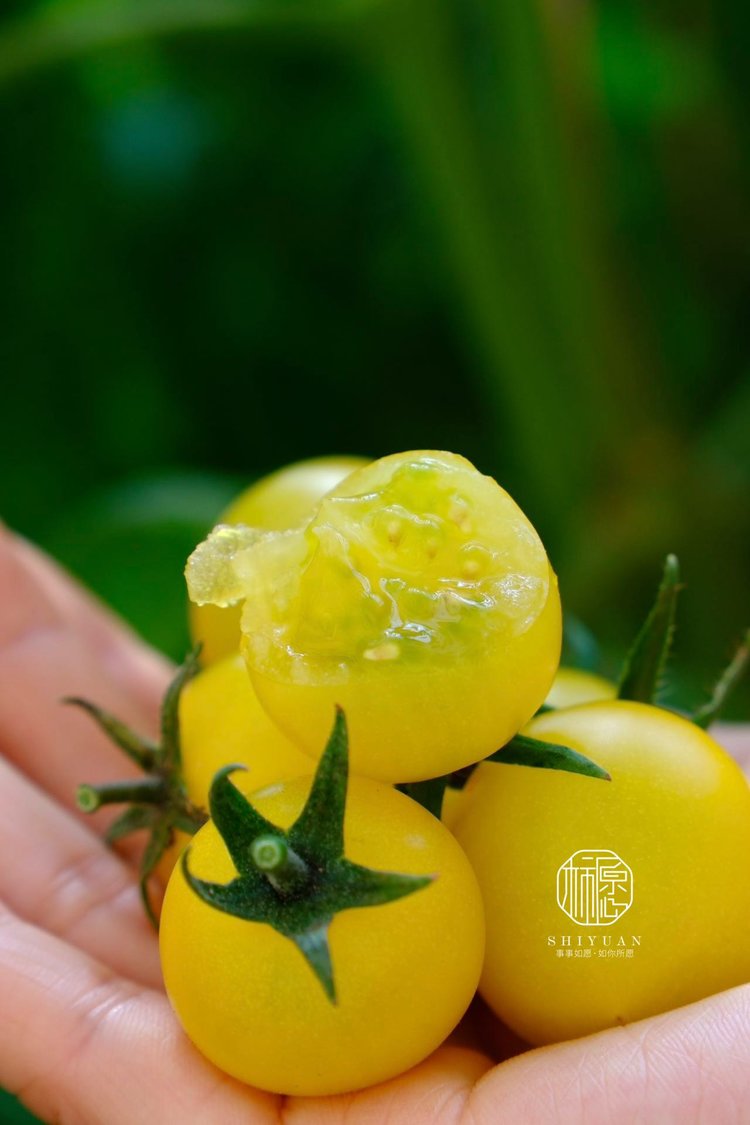 颗颗饱满,像黄色的宝石一样,晶莹剔透,而且黄色番茄中含有丰富的番茄红素,维生素C,维生素E和多种维生素,非常健康。