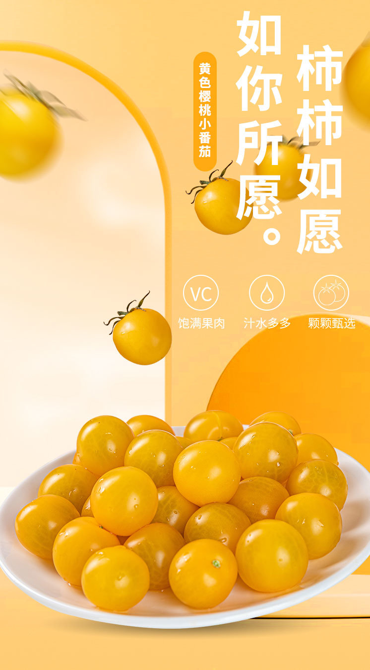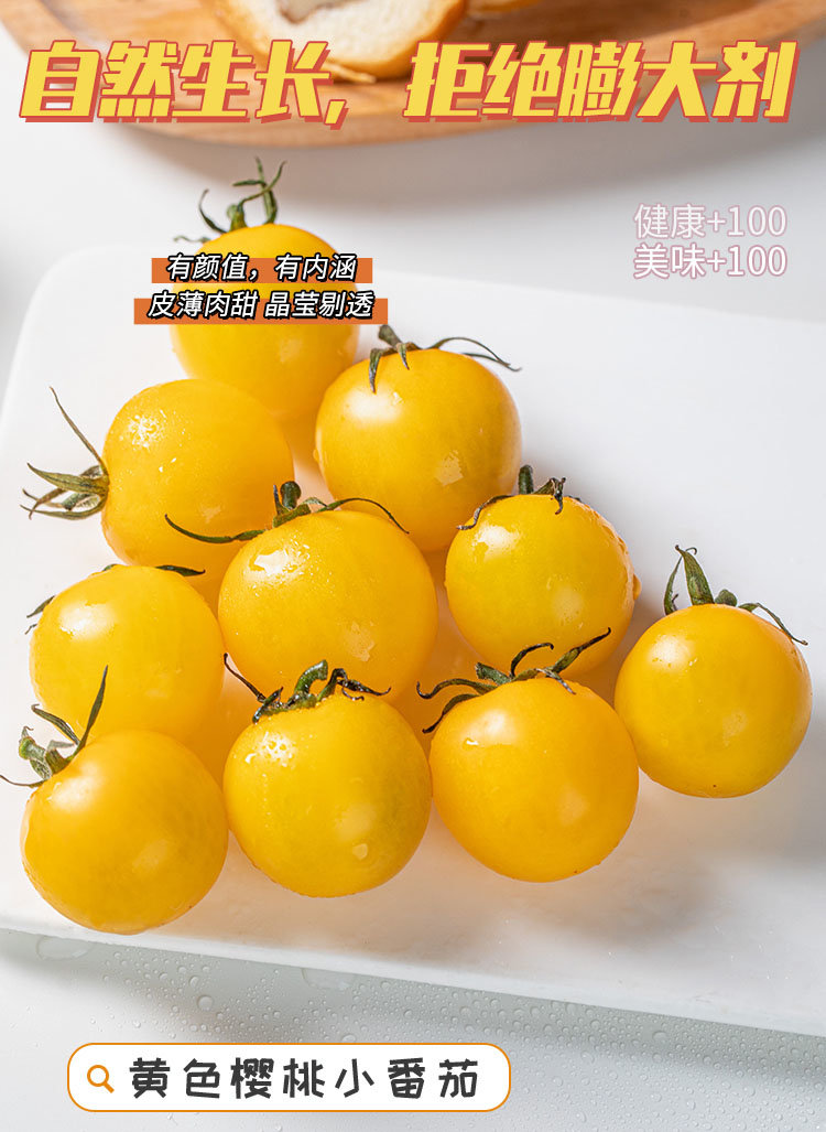 【黄色樱桃小番茄】口感正宗 酸甜多汁,果肉细腻,细腻的果肉咬一口,汁水四溢,夹杂着一丝丝酸味,回味香甜怡-CC