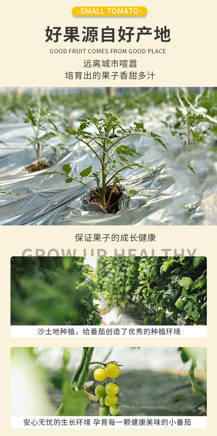 自然生长的小番茄新鲜味道,口感浓郁,带你回味小时候的味道,个头均匀,让人一见便口水淋漓。
