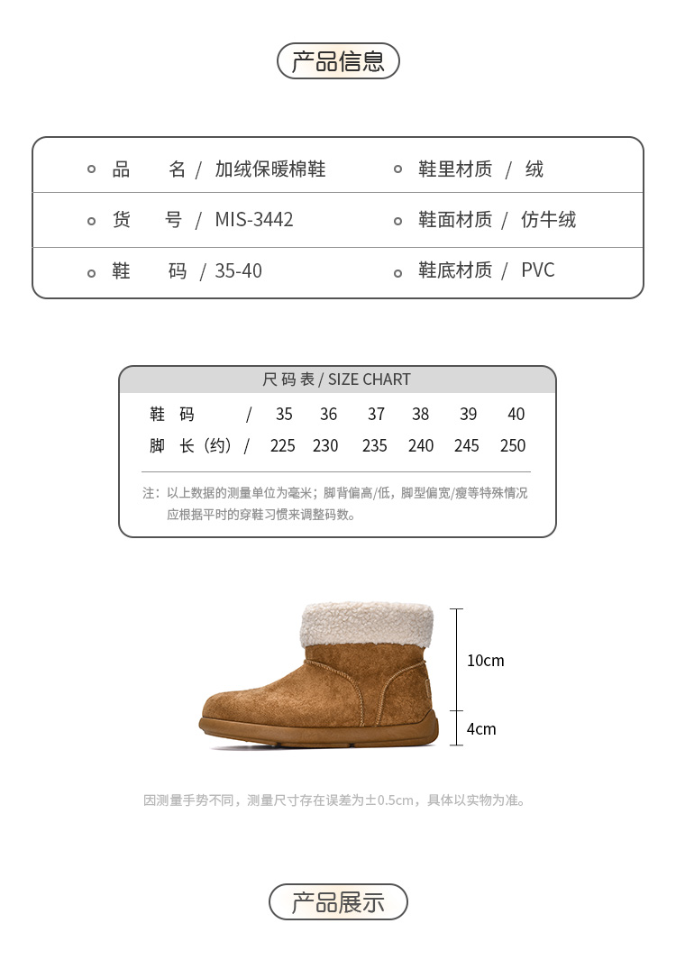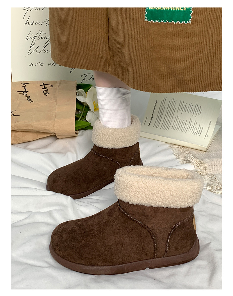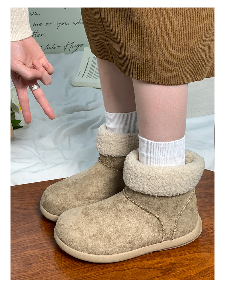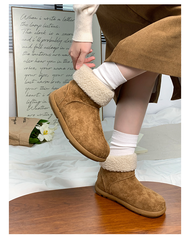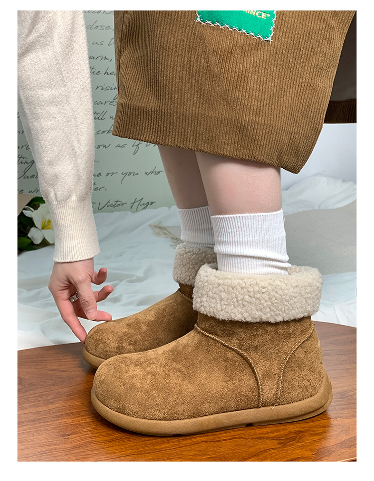 【YW】无忧购复古羊羔毛加绒保暖圆头软平底雪地靴女MIS-3442(截单后3-5天发货)