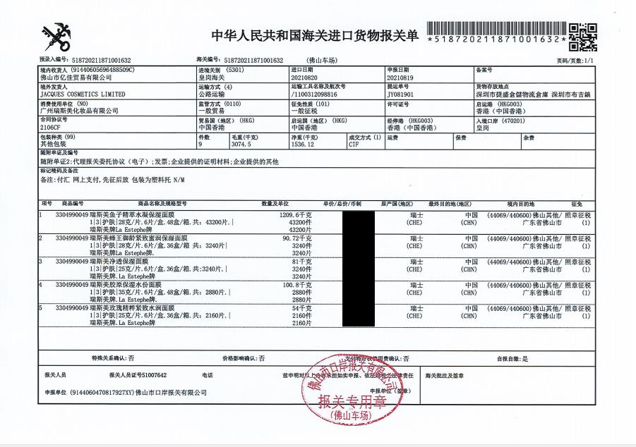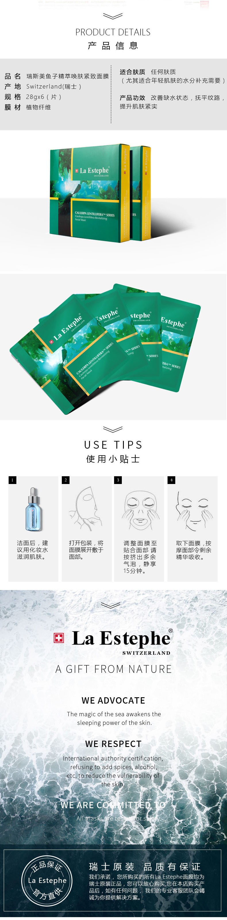 【中欧班列精选】瑞士瑞斯美面膜 原装进口LaEstephe绿鱼子紧致/积雪草胶原补水保湿面膜 6片/盒*2