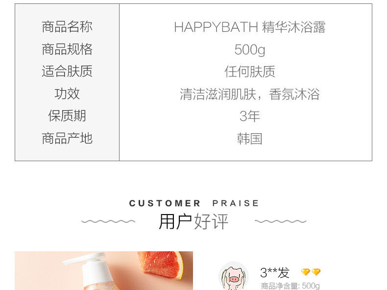 XDR HAPPY BATH植物精华沐浴露持久留500g