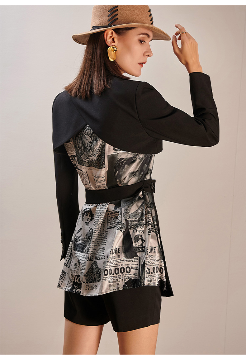 剩S/M/L/XL 芳外新款真丝拼接后背立体拼接摩登时尚式西服8T21AX0296