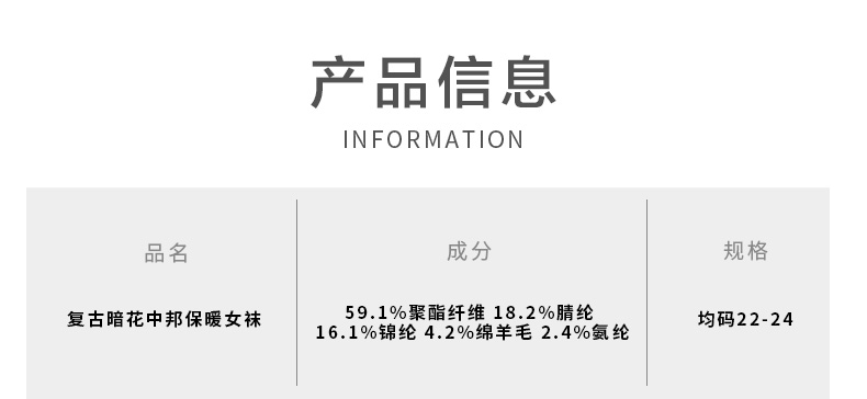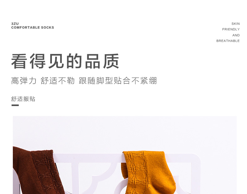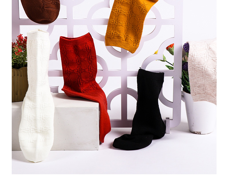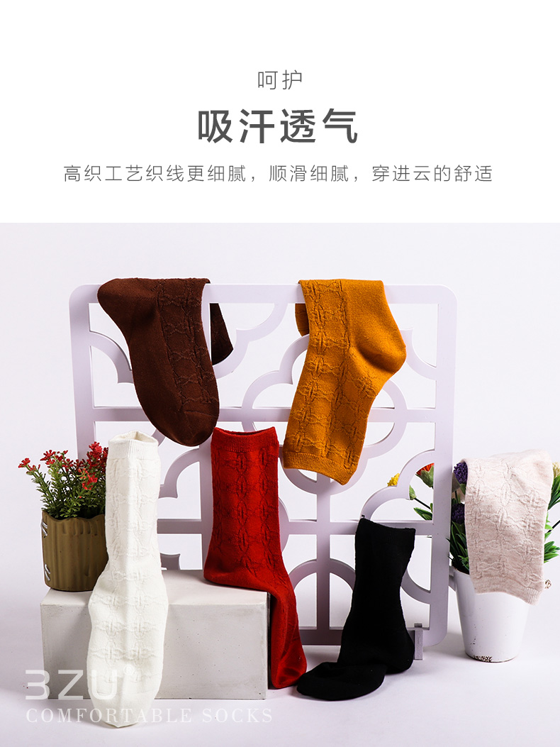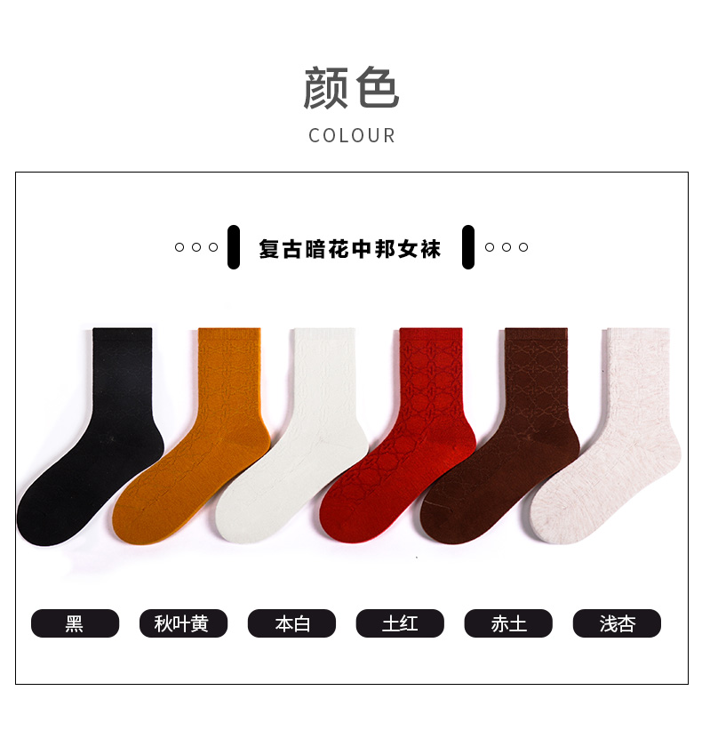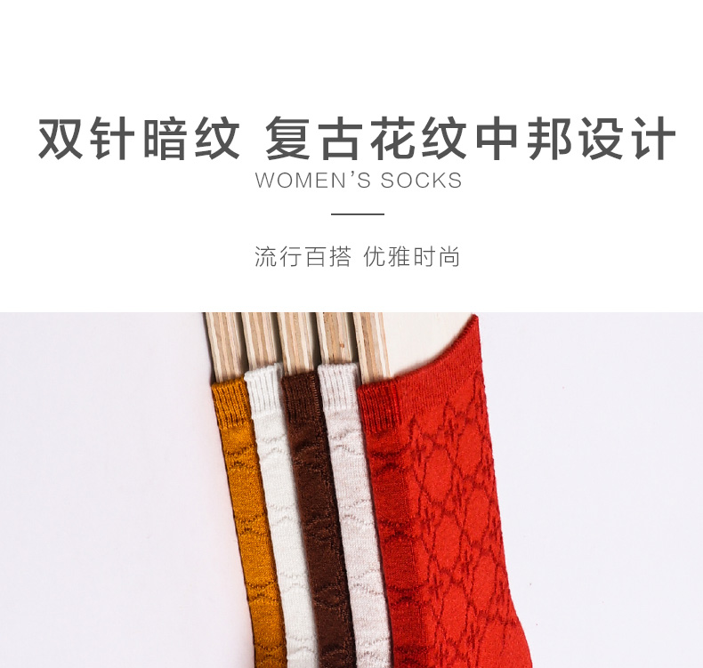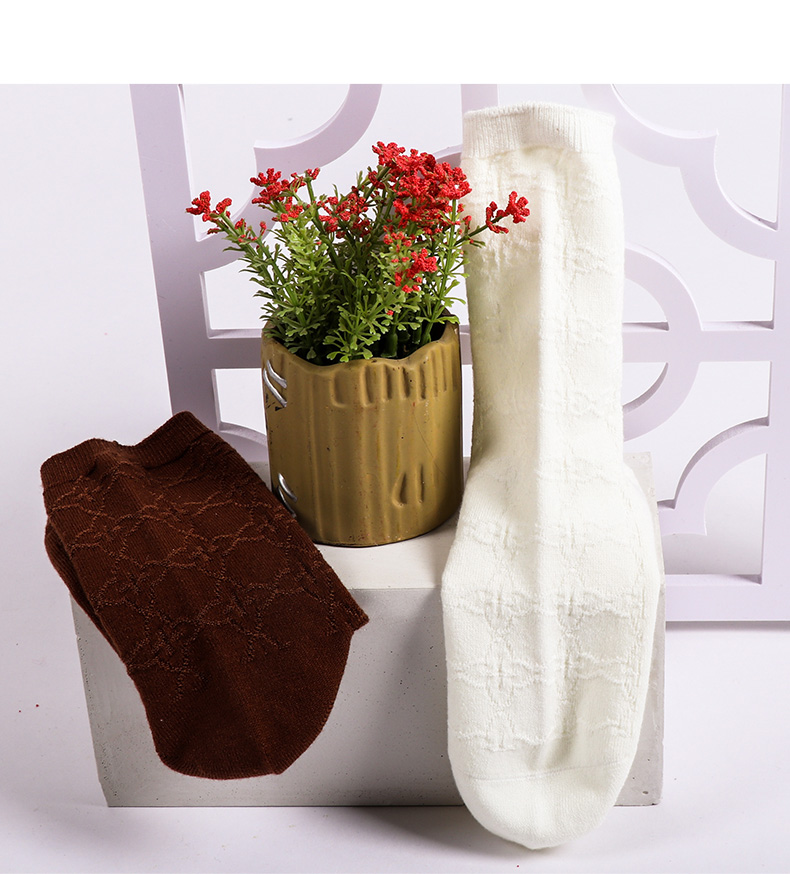 【任选6双99.5】足装秀秋冬女士春季中筒丝光羊毛保暖双针工艺暗花中邦女袜
