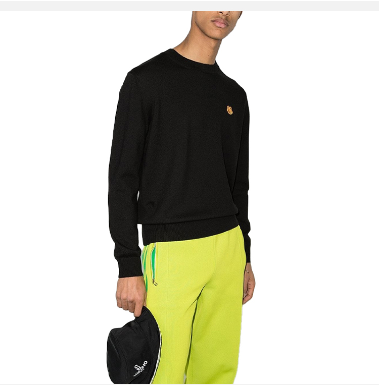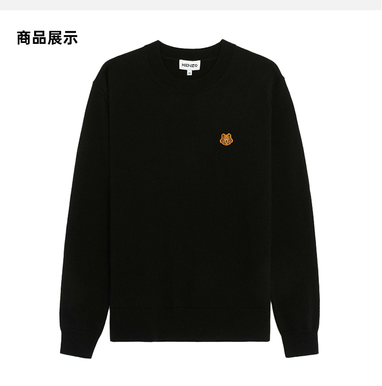 KENZO 高田贤三 男士小虎头徽标刺绣羊毛长袖针织衫 黑色 FB65 PU642 3TA 99