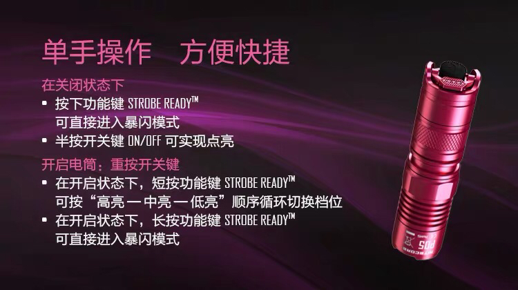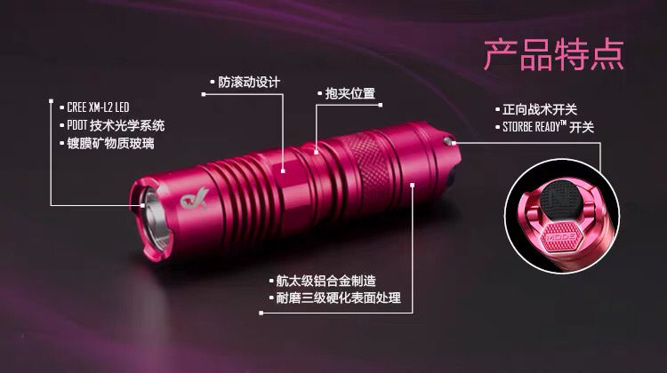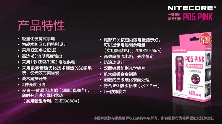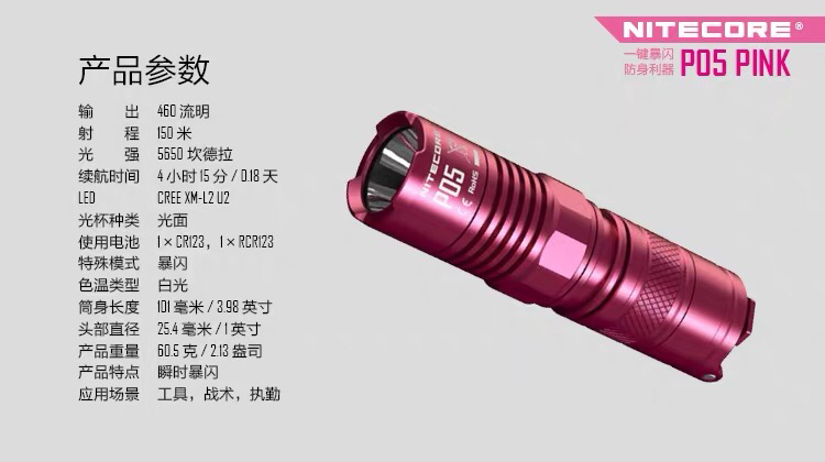 [清仓特惠]NITECORE奈特科尔P05 PINK粉红丝带版强光防卫一键爆闪小巧手电筒