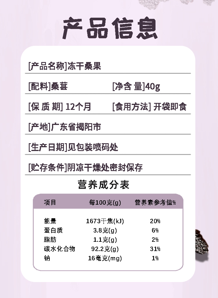 果舒元 原味桑葚冻干3袋(套装) 40g/袋*3袋