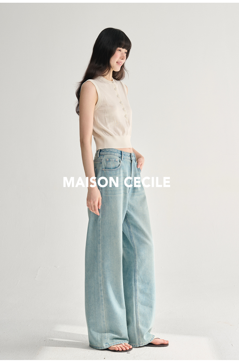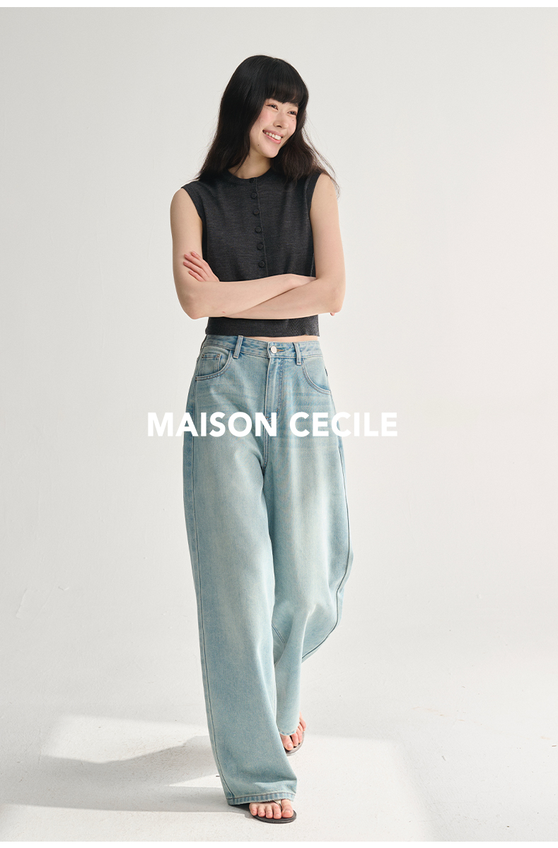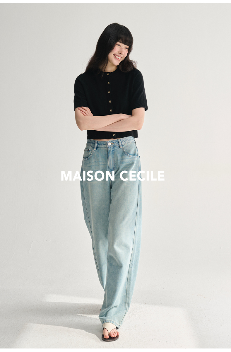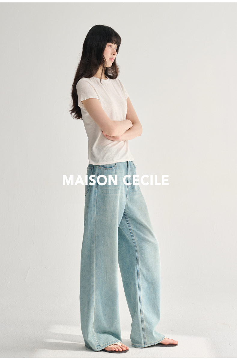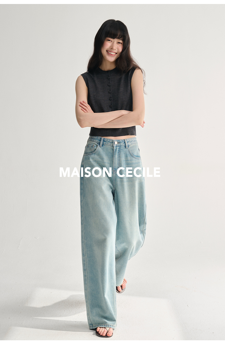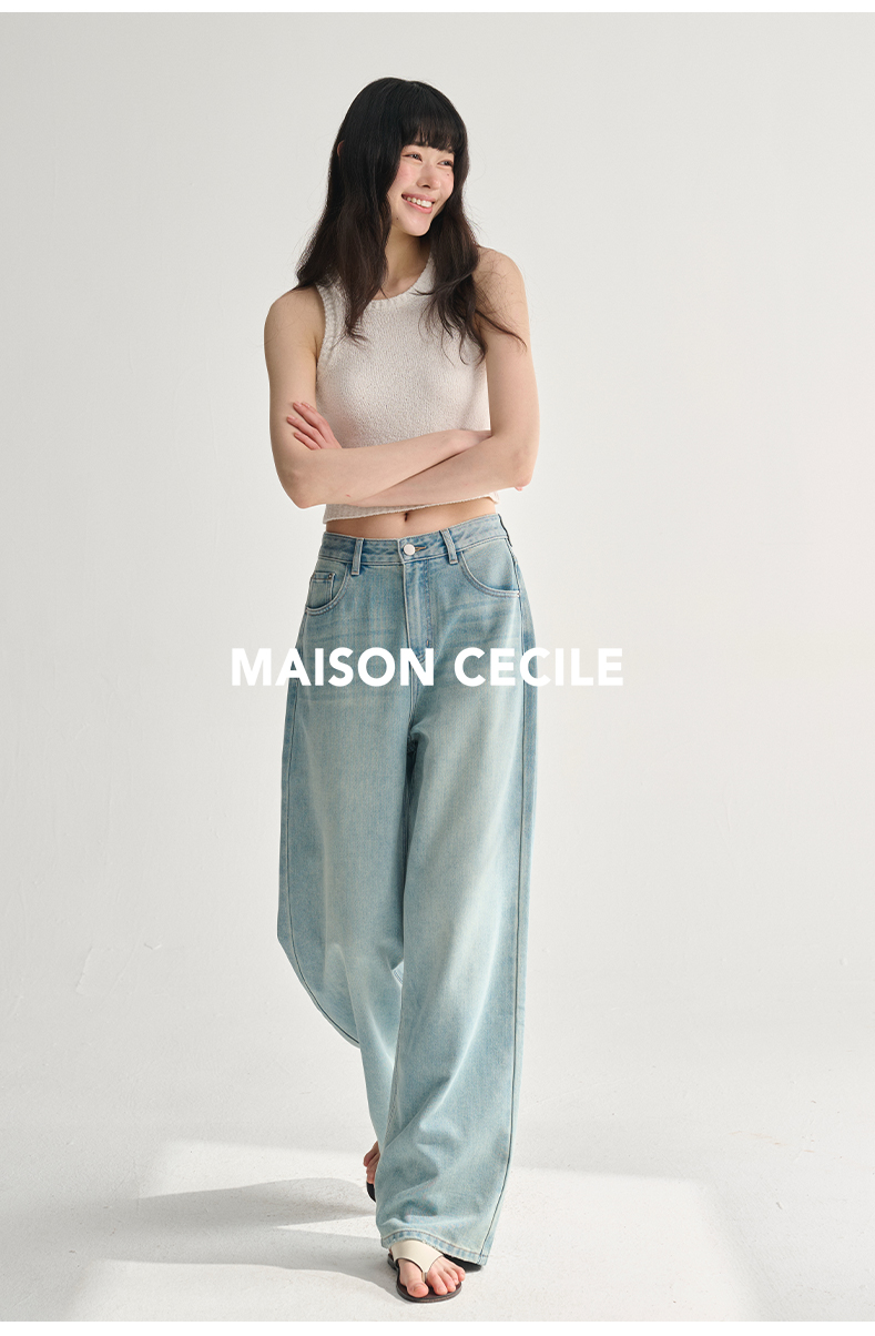 MAISON CECILE夏日浅蓝水洗显比例直筒梨形可穿牛仔长裤