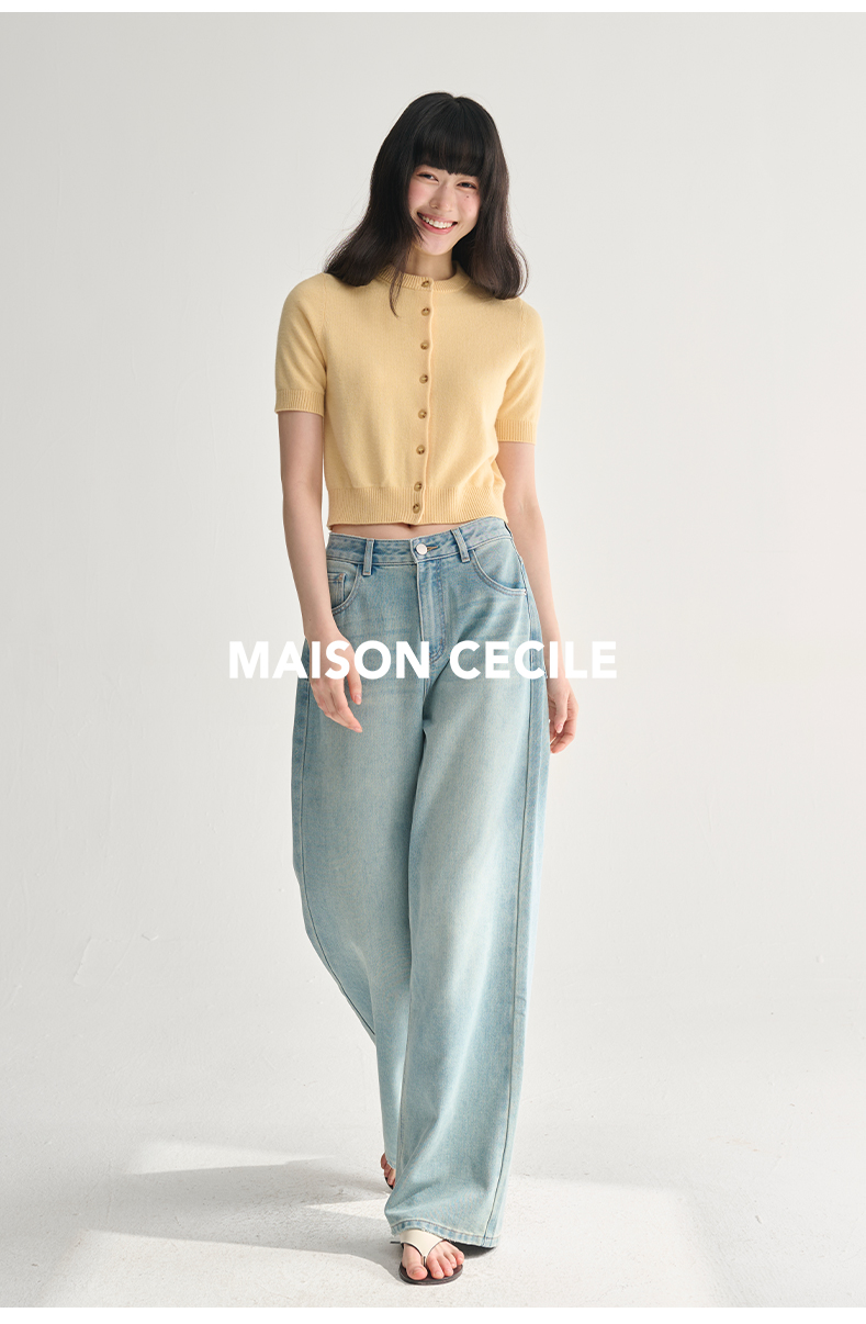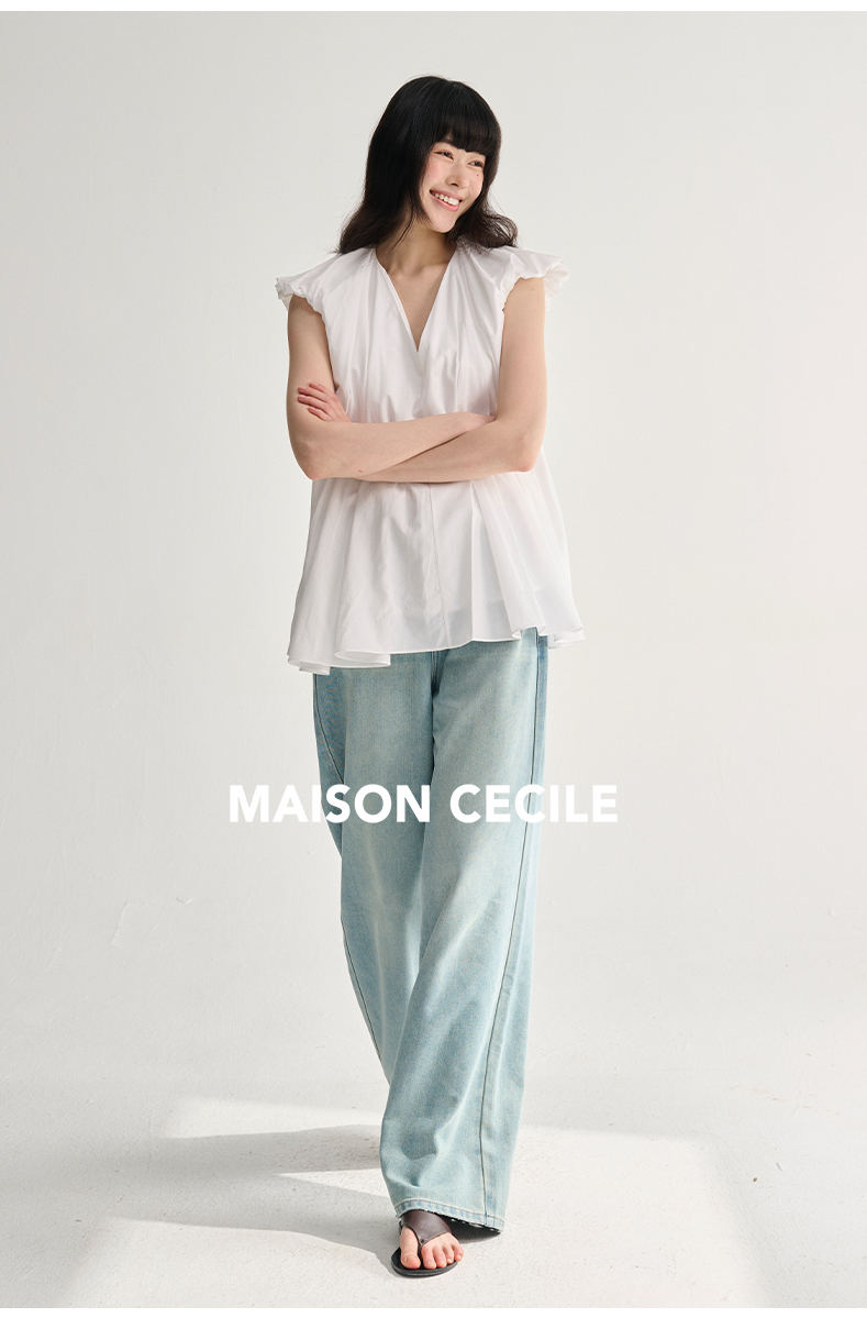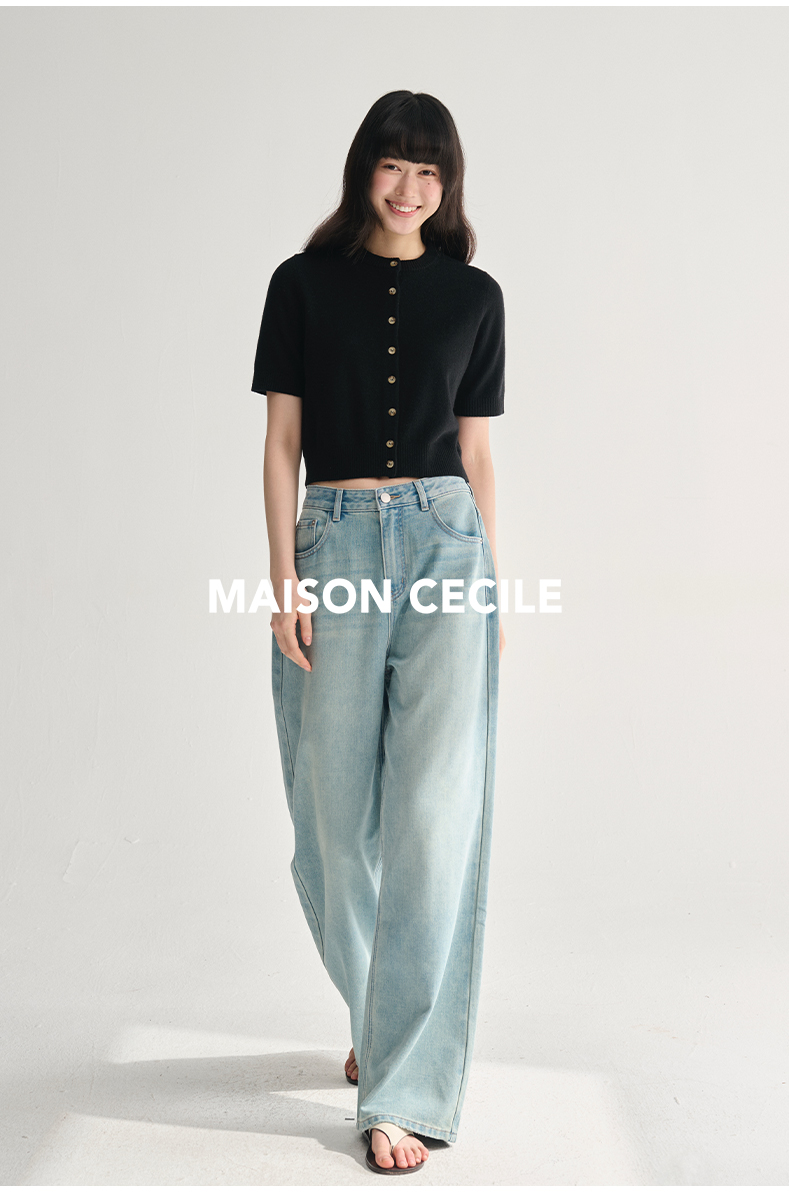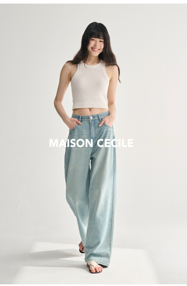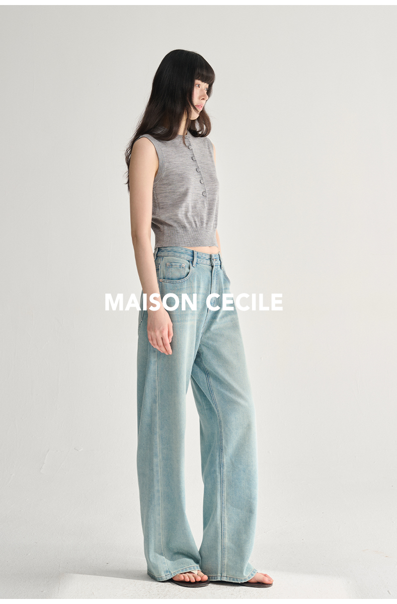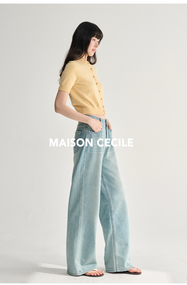 MAISON CECILE夏日浅蓝水洗显比例直筒梨形可穿牛仔长裤