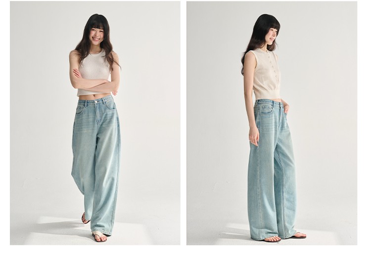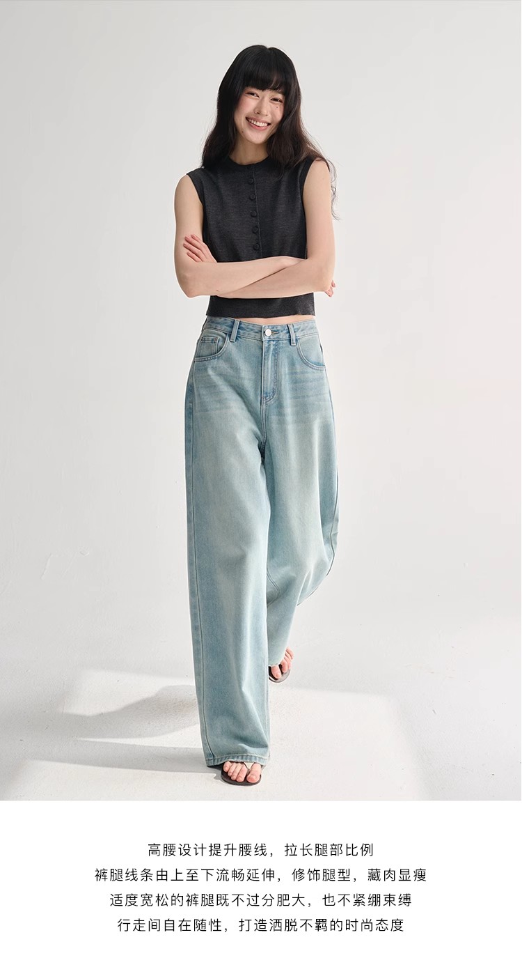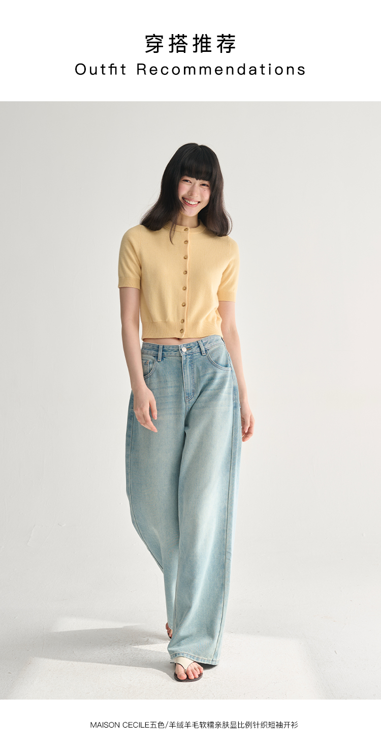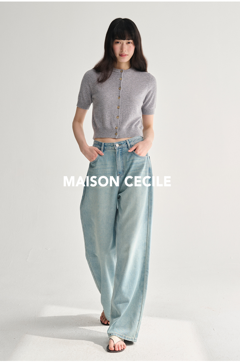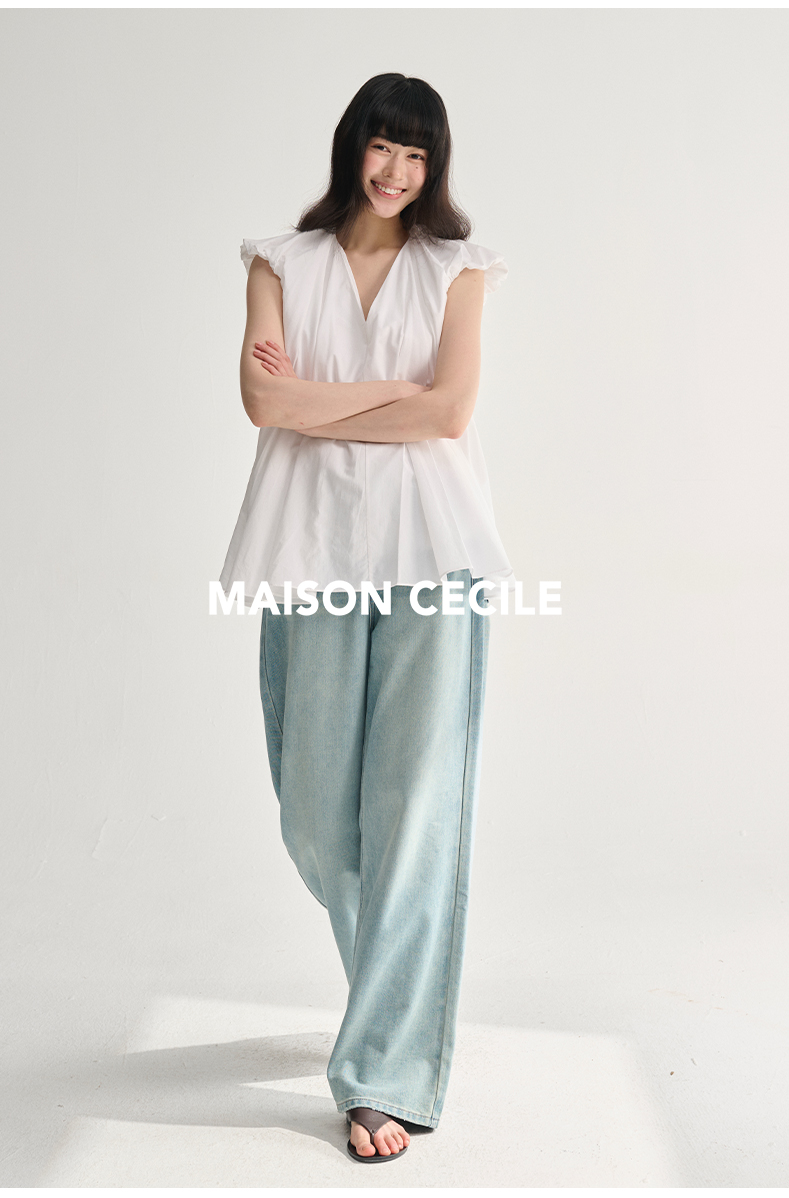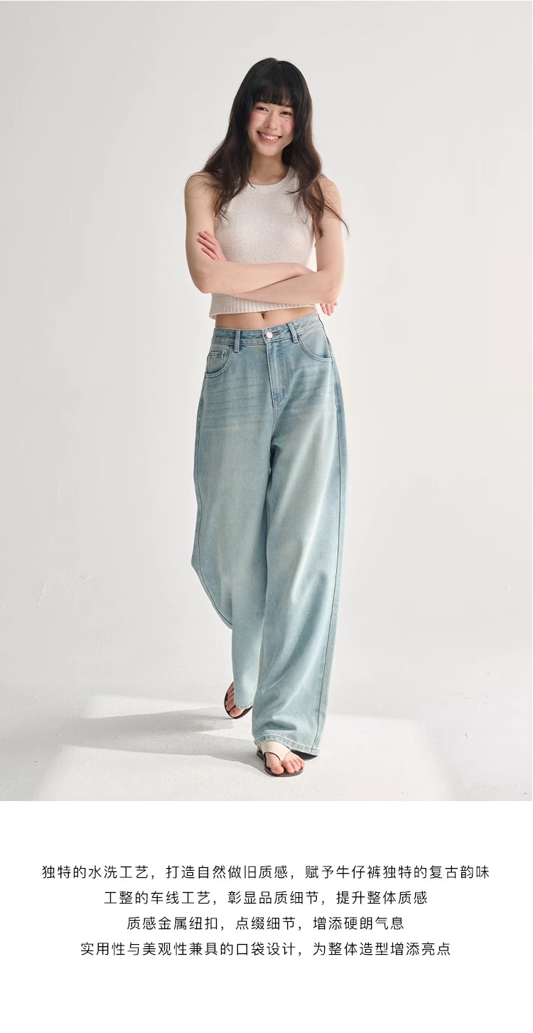 MAISON CECILE夏日浅蓝水洗显比例直筒梨形可穿牛仔长裤
