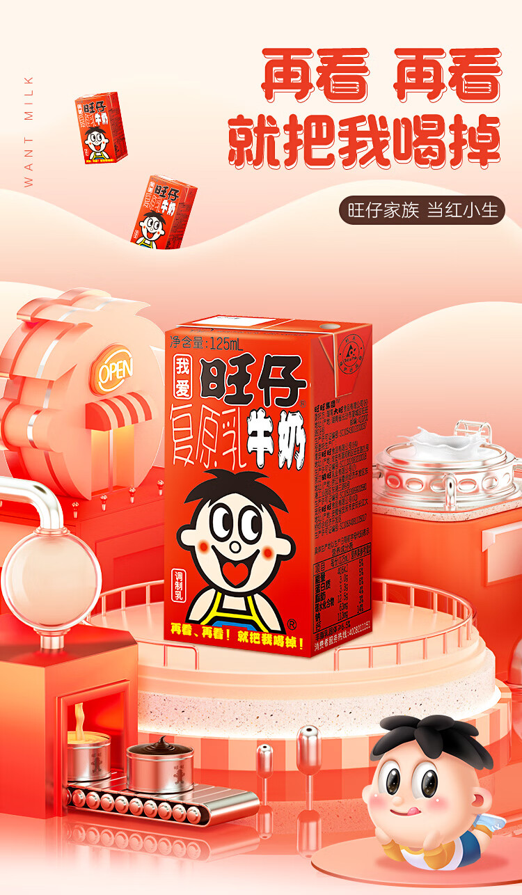 旺旺 旺仔牛奶 儿童牛奶早餐奶 原味 125ml*24