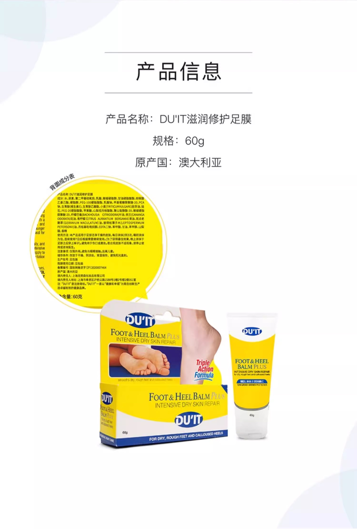 澳洲DUIT 滋润修护足膜60g
