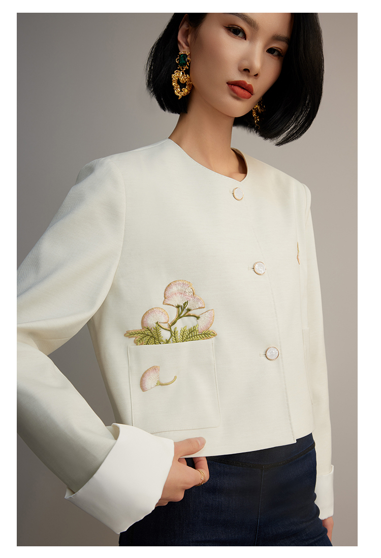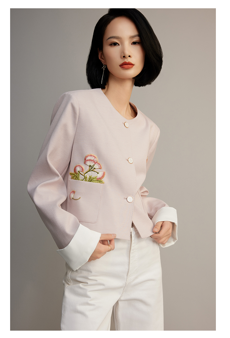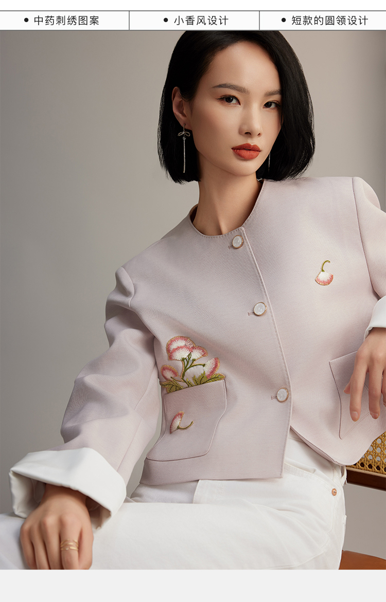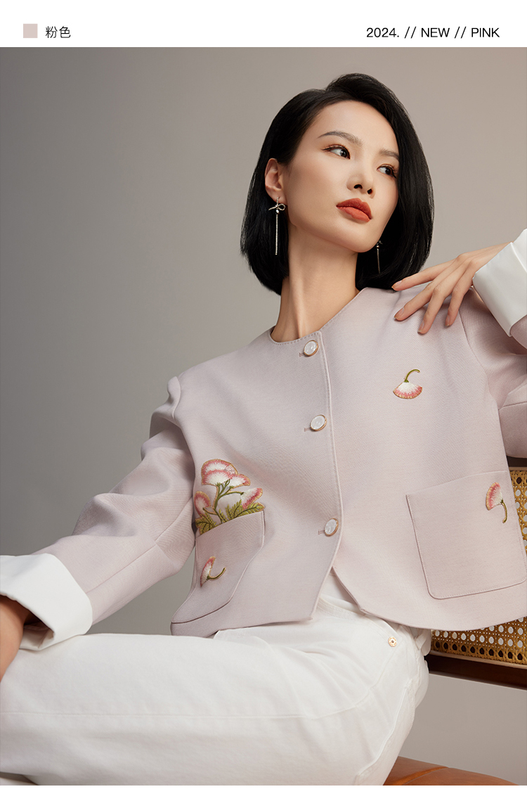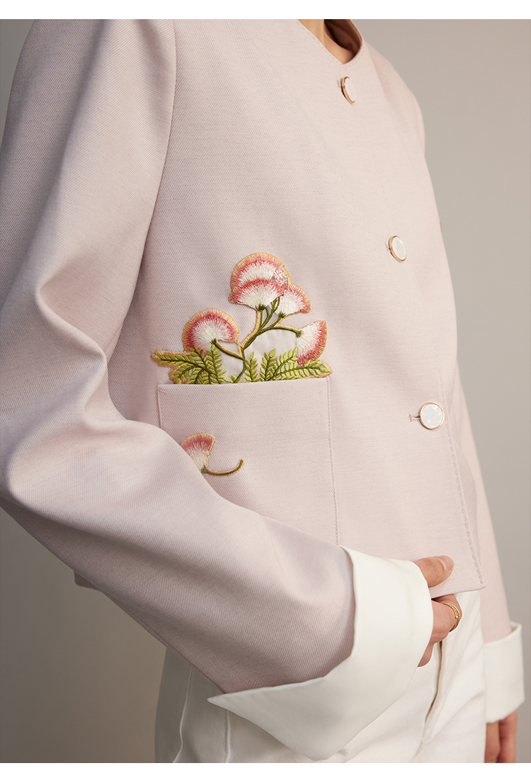 郭培成衣品牌【“药”爱自己】合欢花刺绣小香风撞色外套