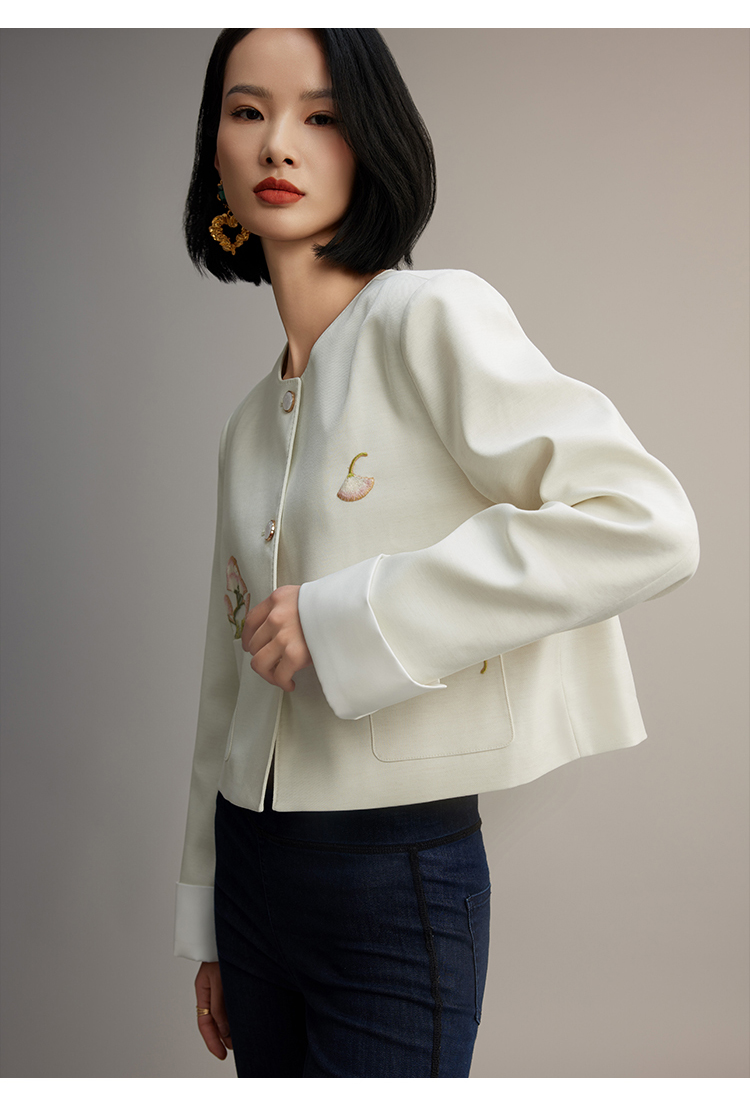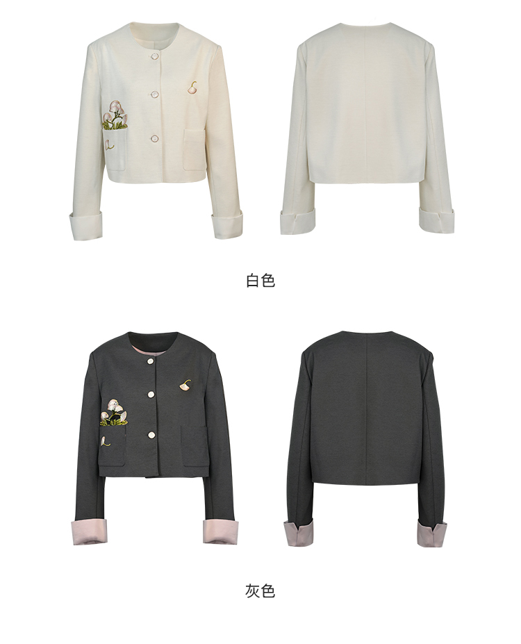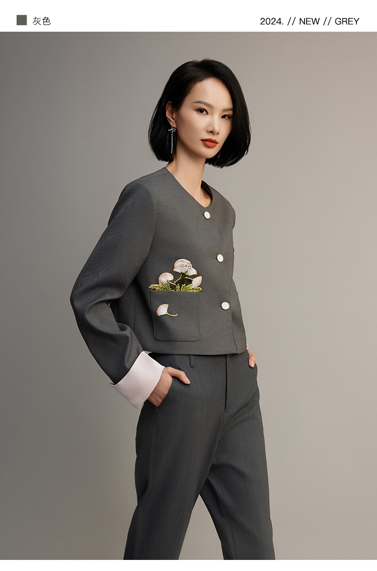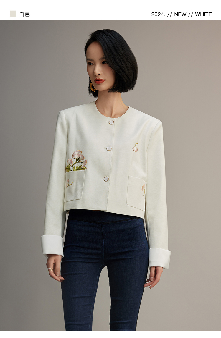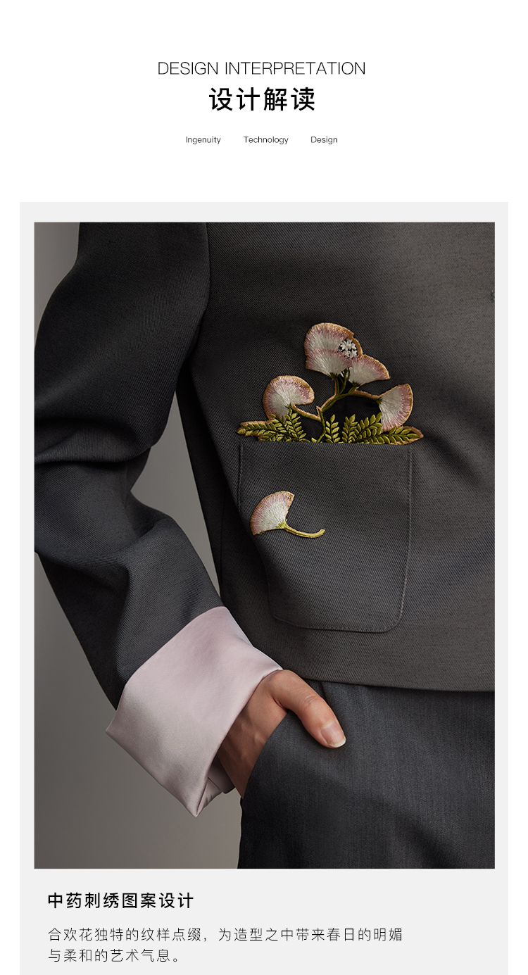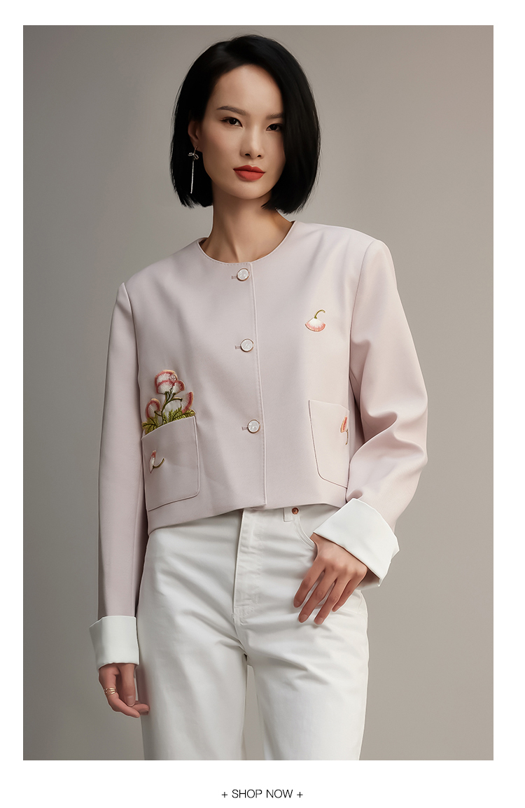 郭培成衣品牌【“药”爱自己】合欢花刺绣小香风撞色外套