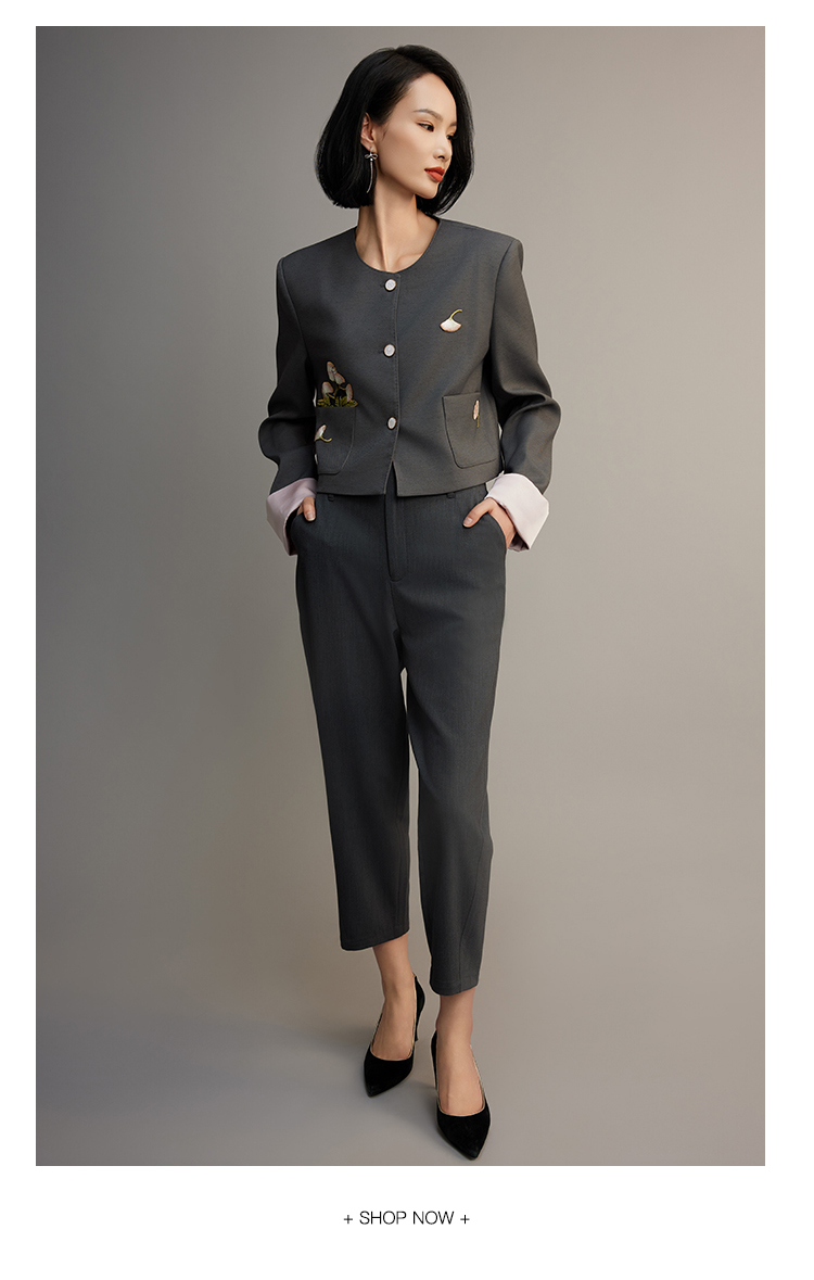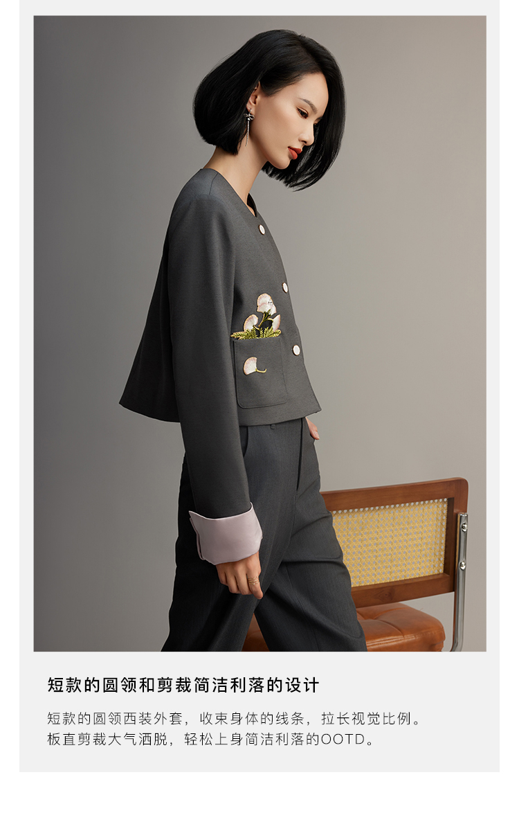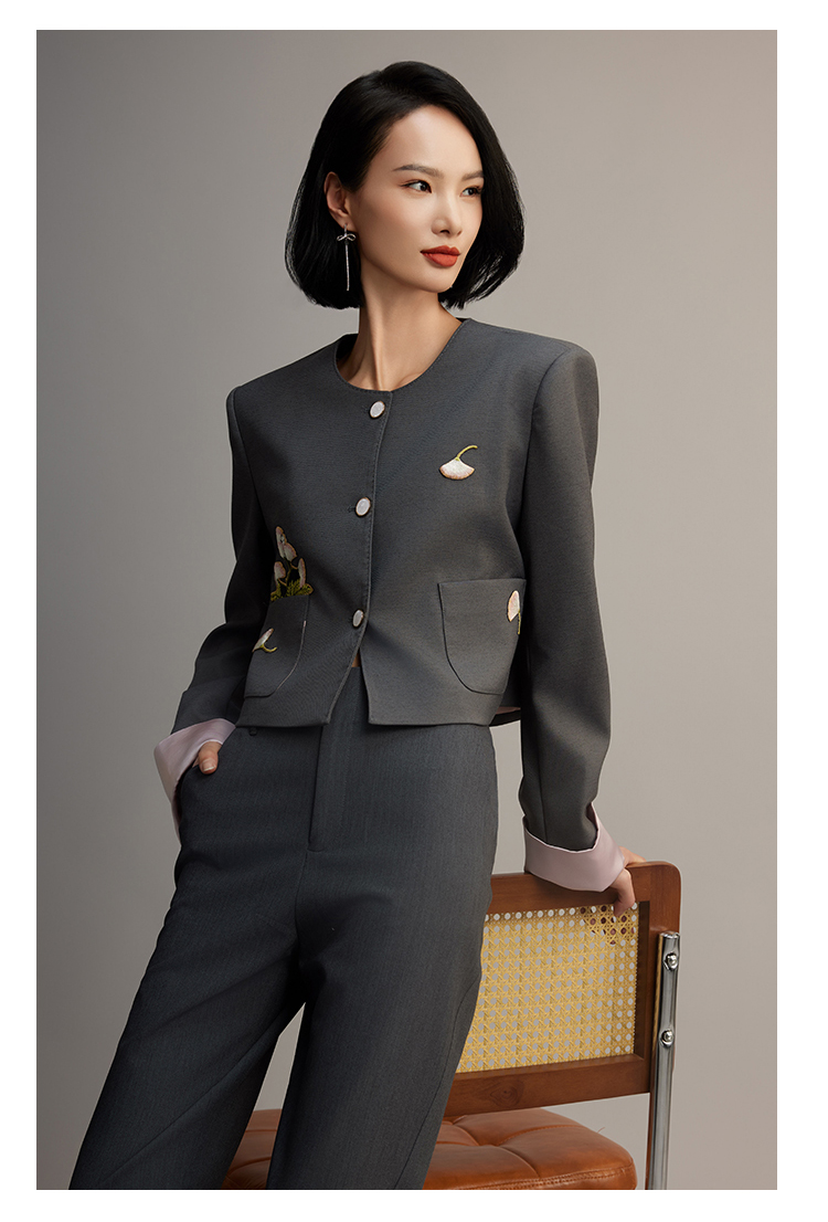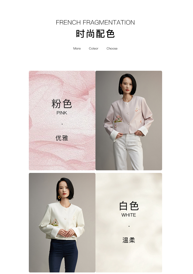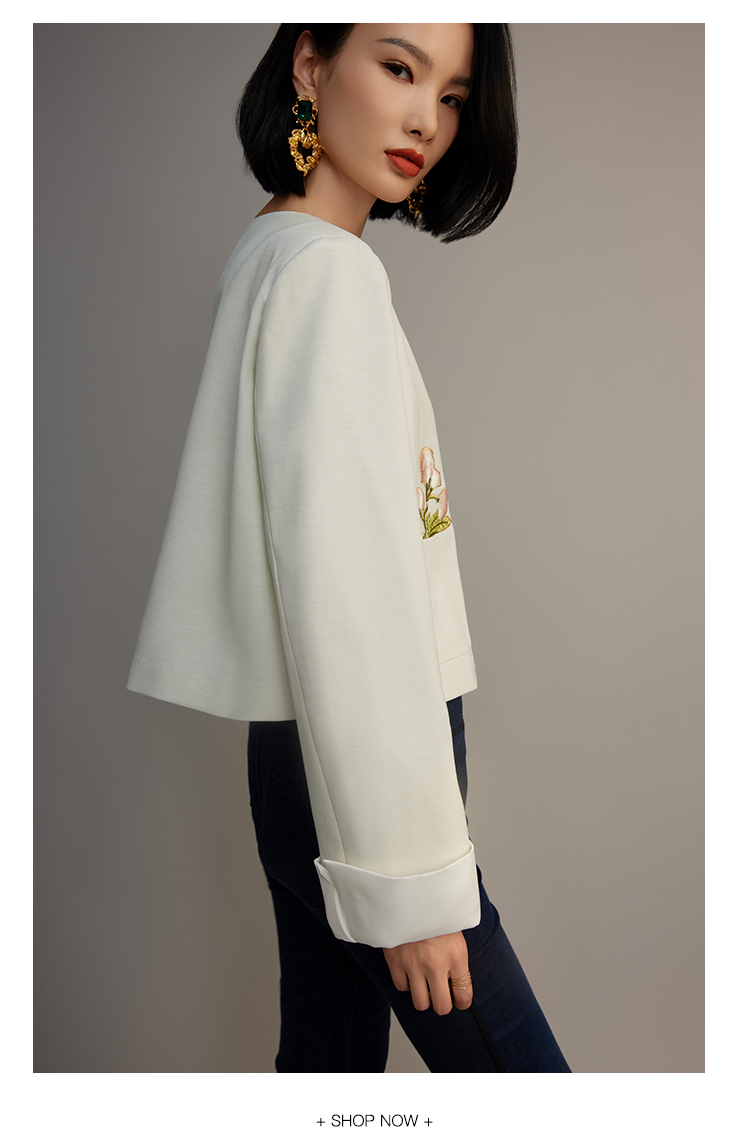 郭培成衣品牌【“药”爱自己】合欢花刺绣小香风撞色外套