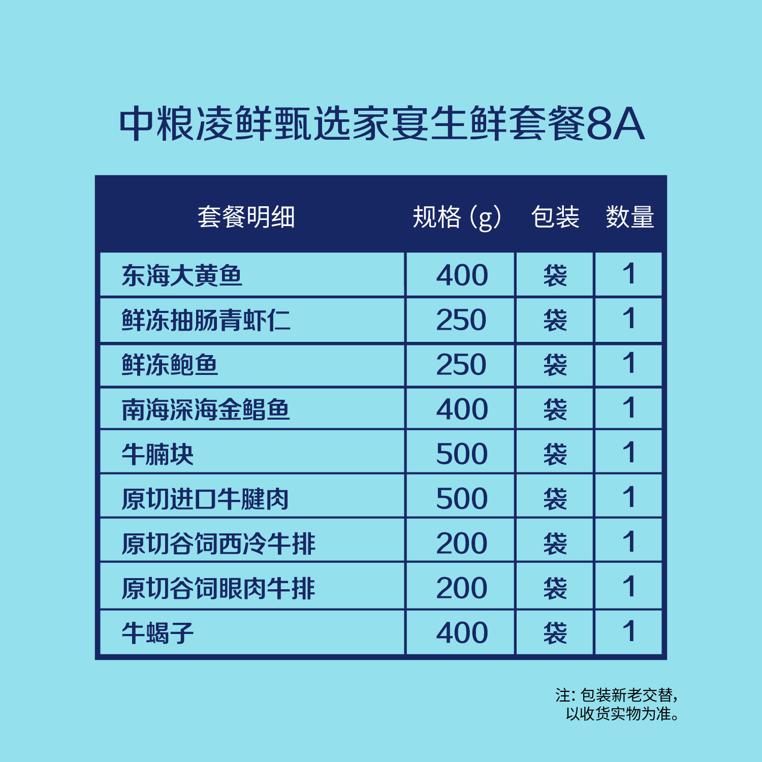 【分仓直发包邮】中粮凌鲜甄选家宴生鲜3100g套餐八A(生鲜冻品收到货后请及时放入冰箱储存,如在运输过程中有解冻属正常现象,并不影响品质,请放心食用!)