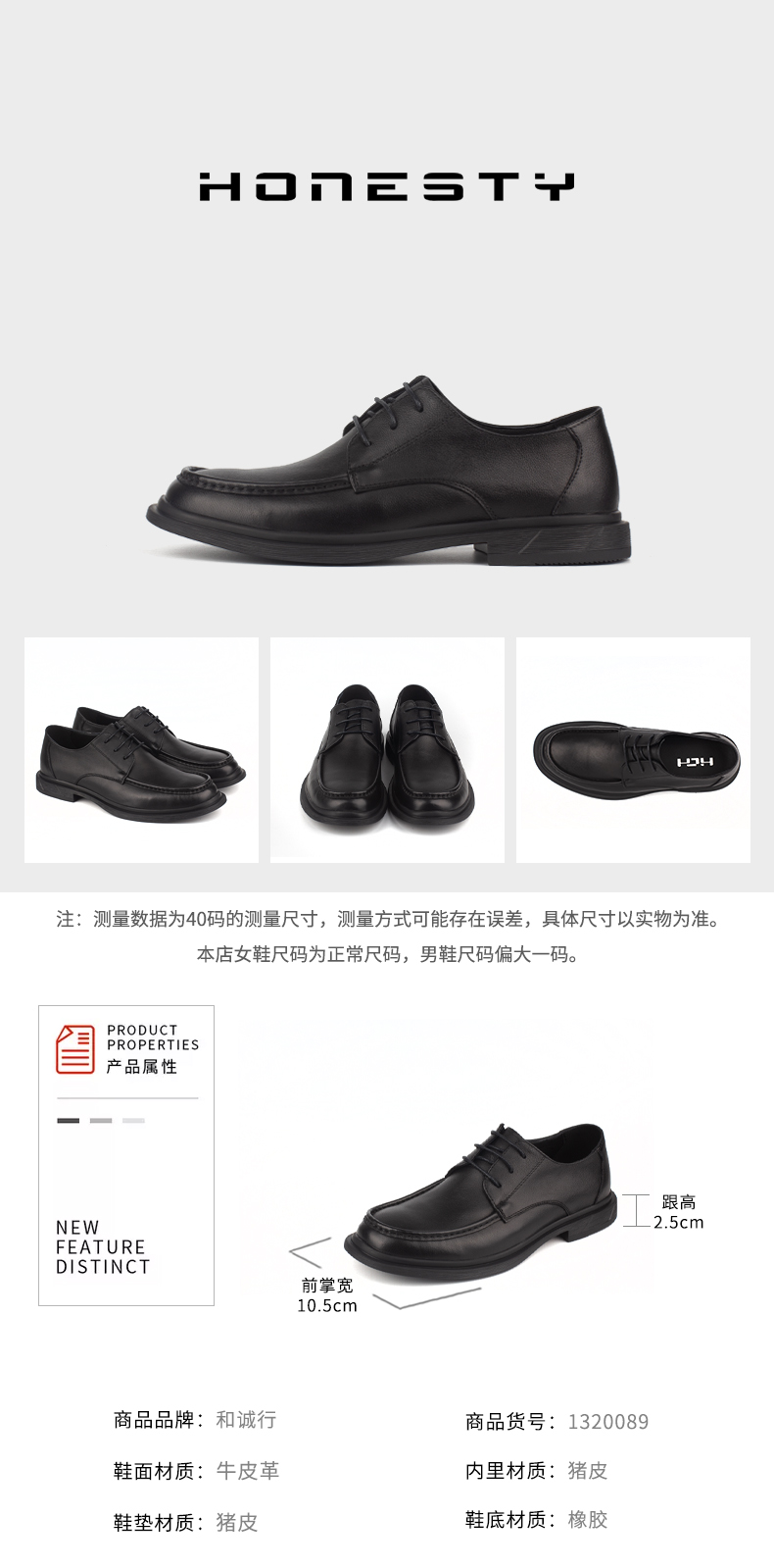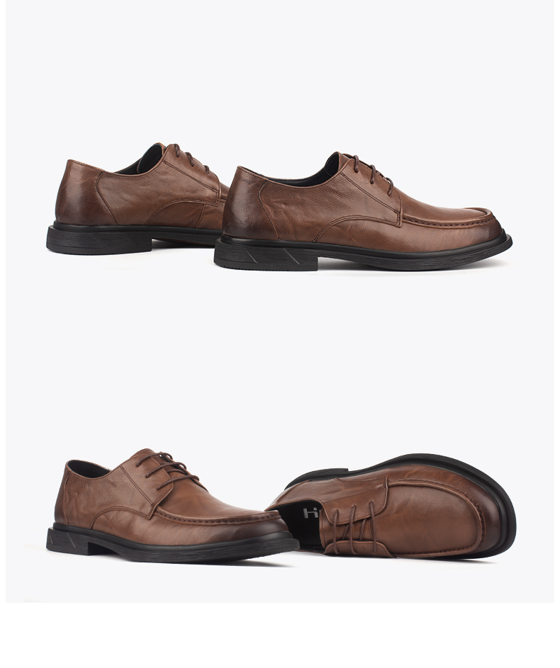 和诚行2025秋季新款百搭男式商务休闲皮鞋系带舒适真皮皮鞋1370137