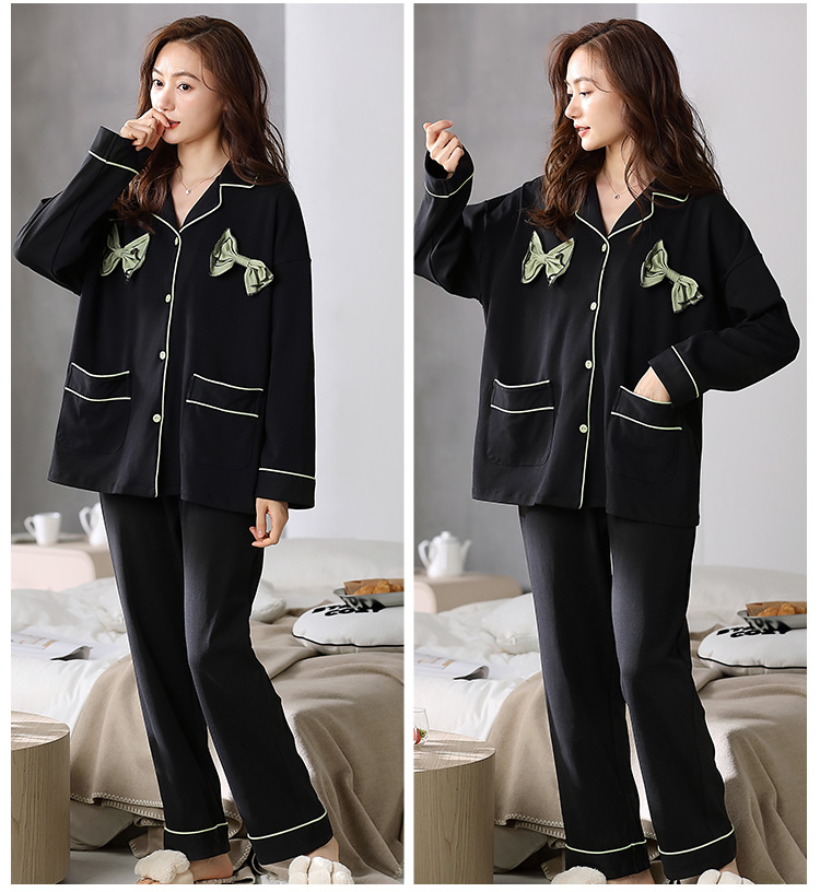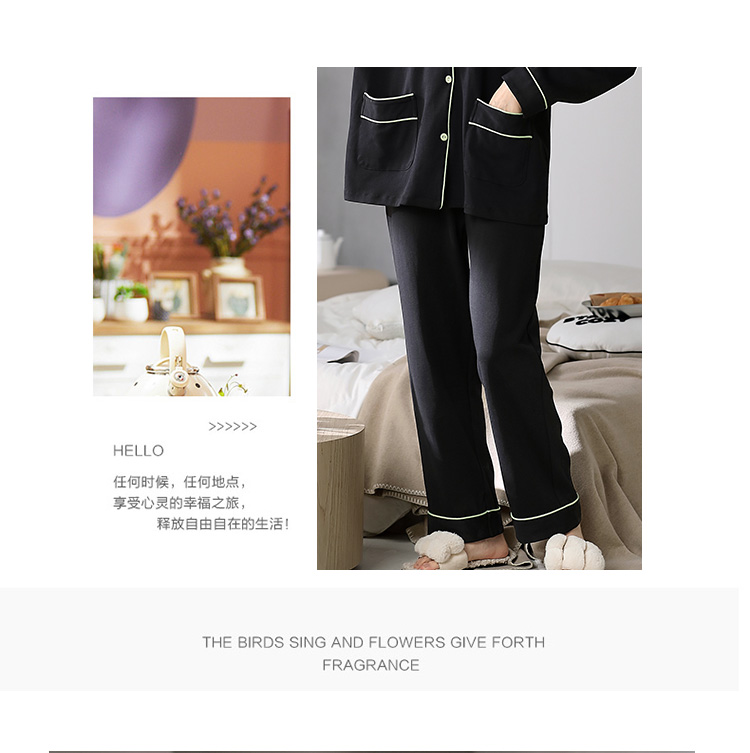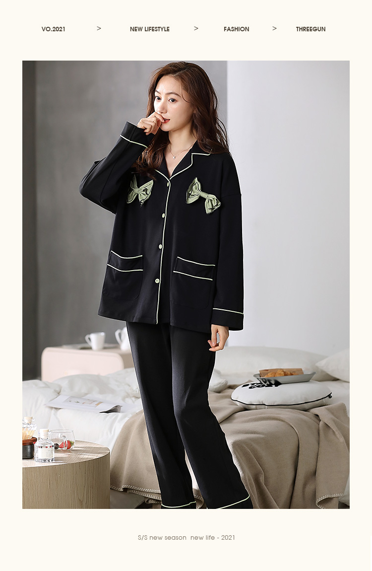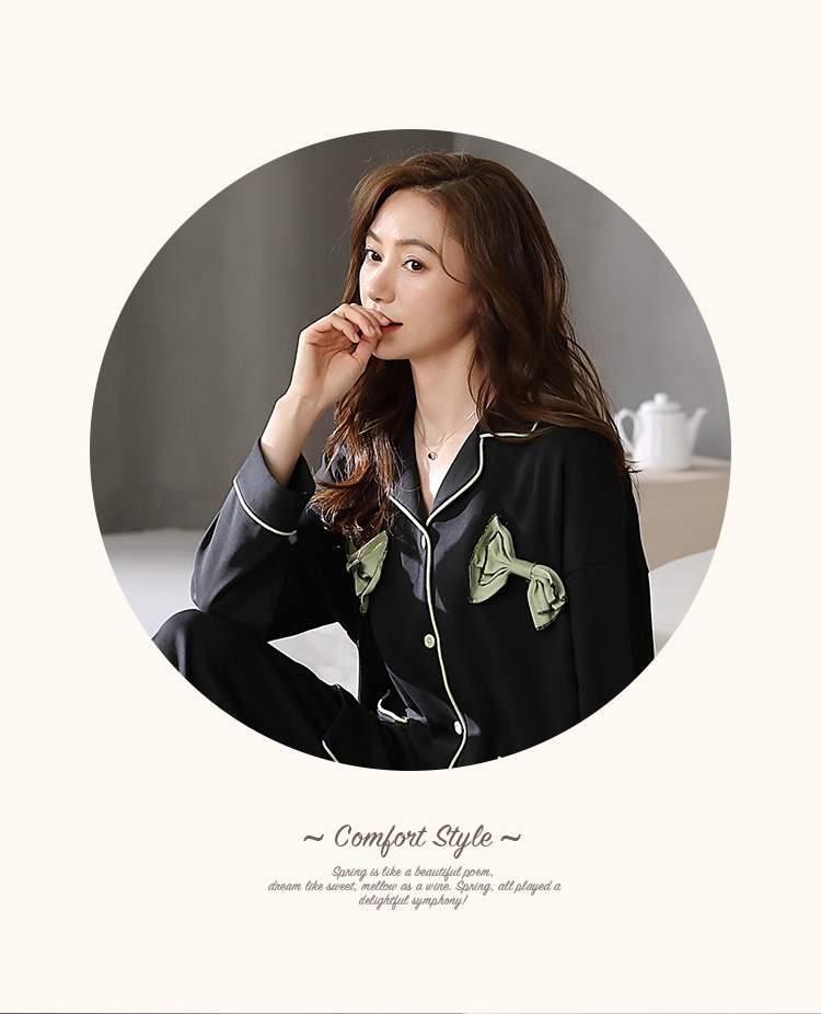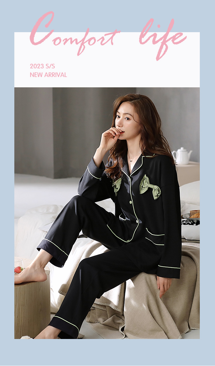 洁丽雅女士家居服套装V领涤棉长袖长裤可外穿睡衣女套装