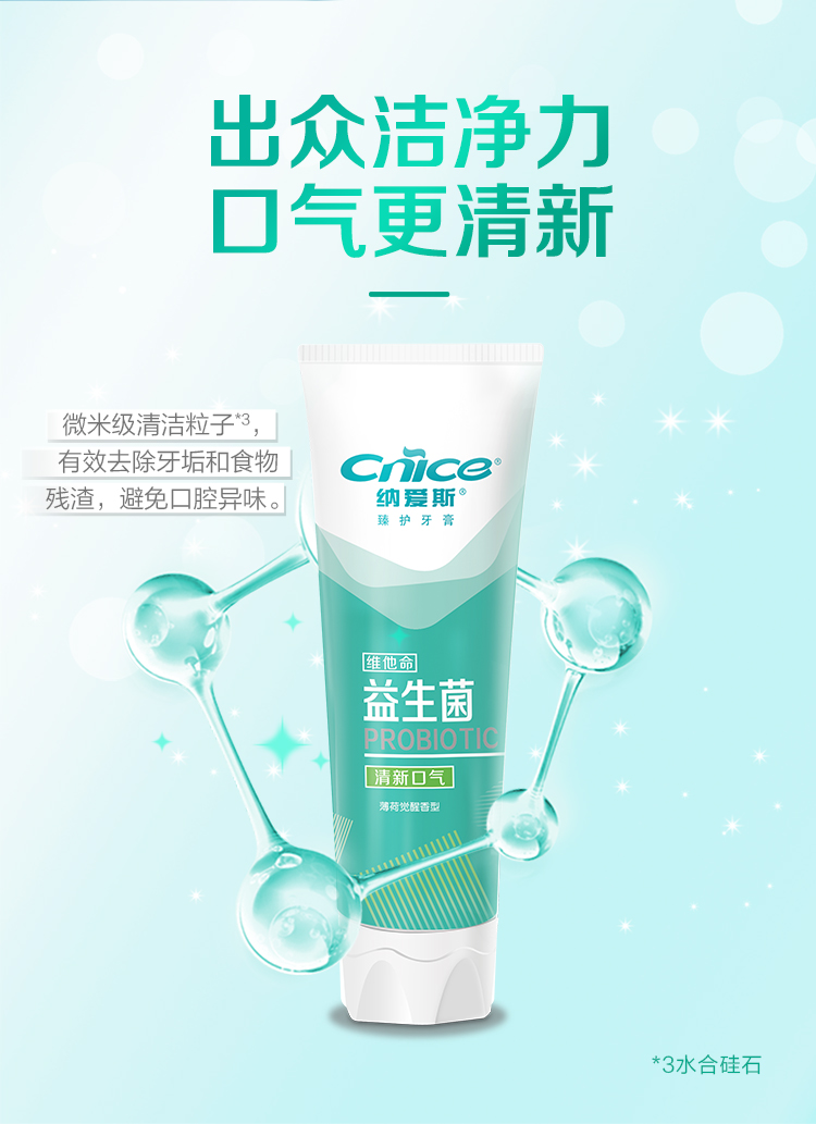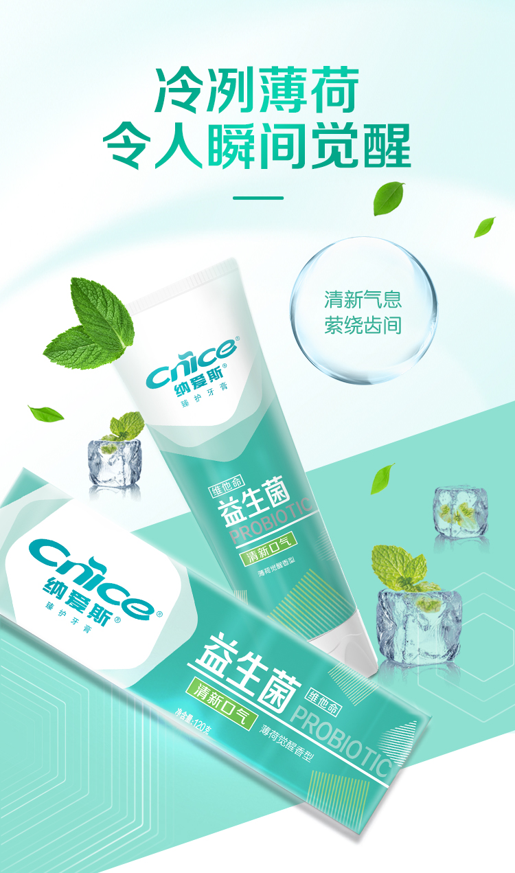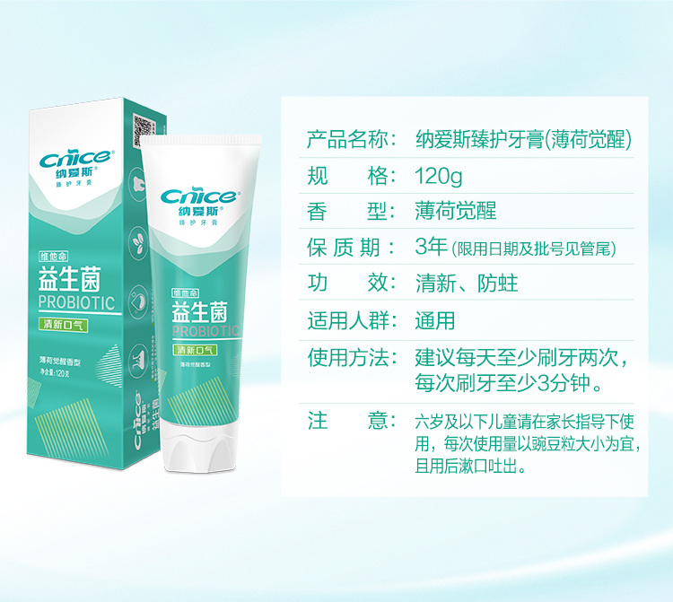 在售BZ 120g纳爱斯臻护益生菌牙膏(薄荷觉醒)(2支起售)