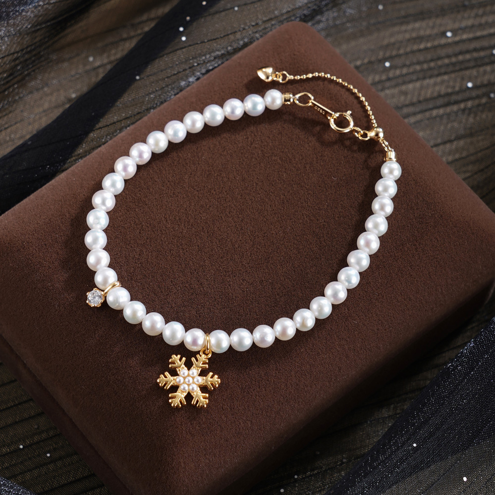 子佩集【凛冬雪女】银S925珍珠惜王妃手链【MLSL015】镀金雪花2602