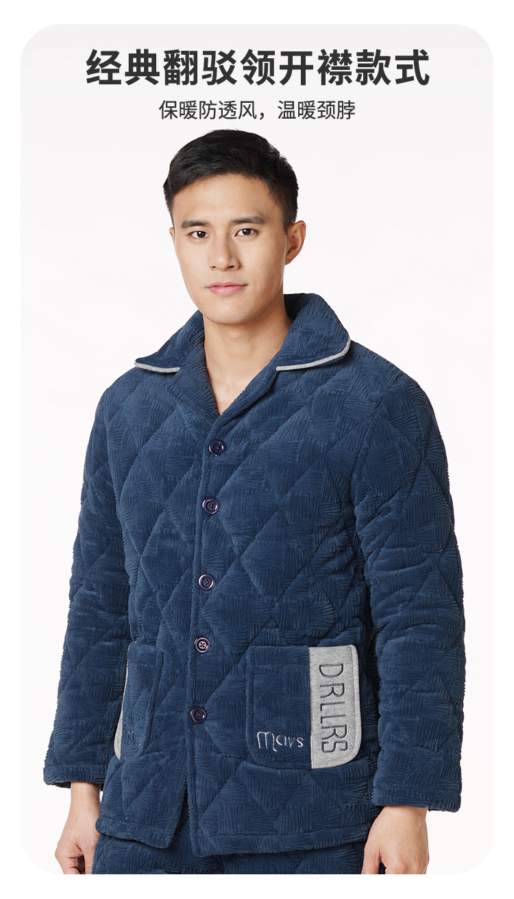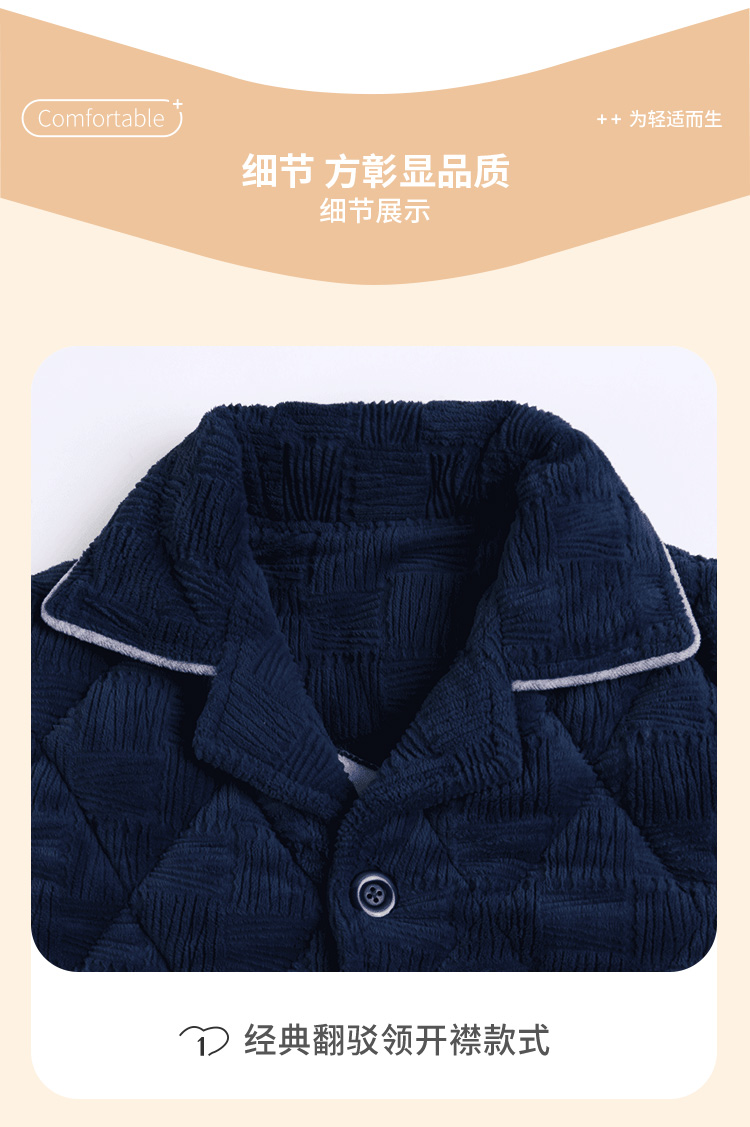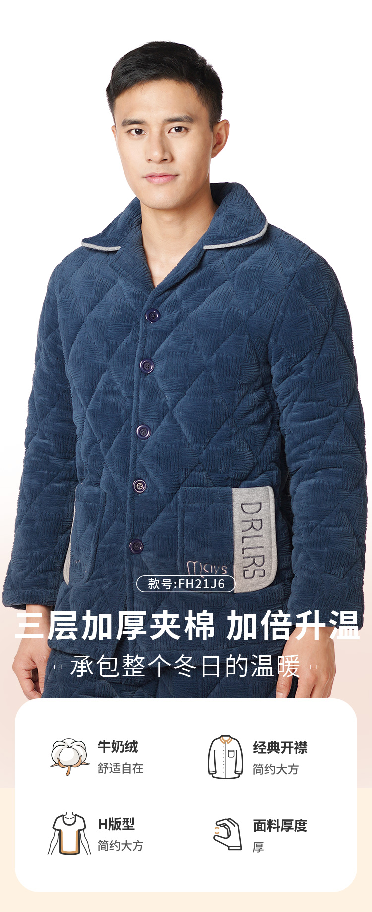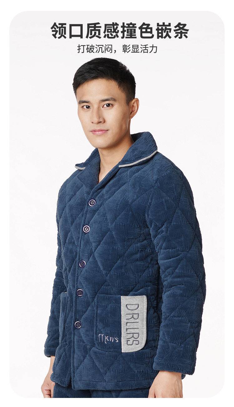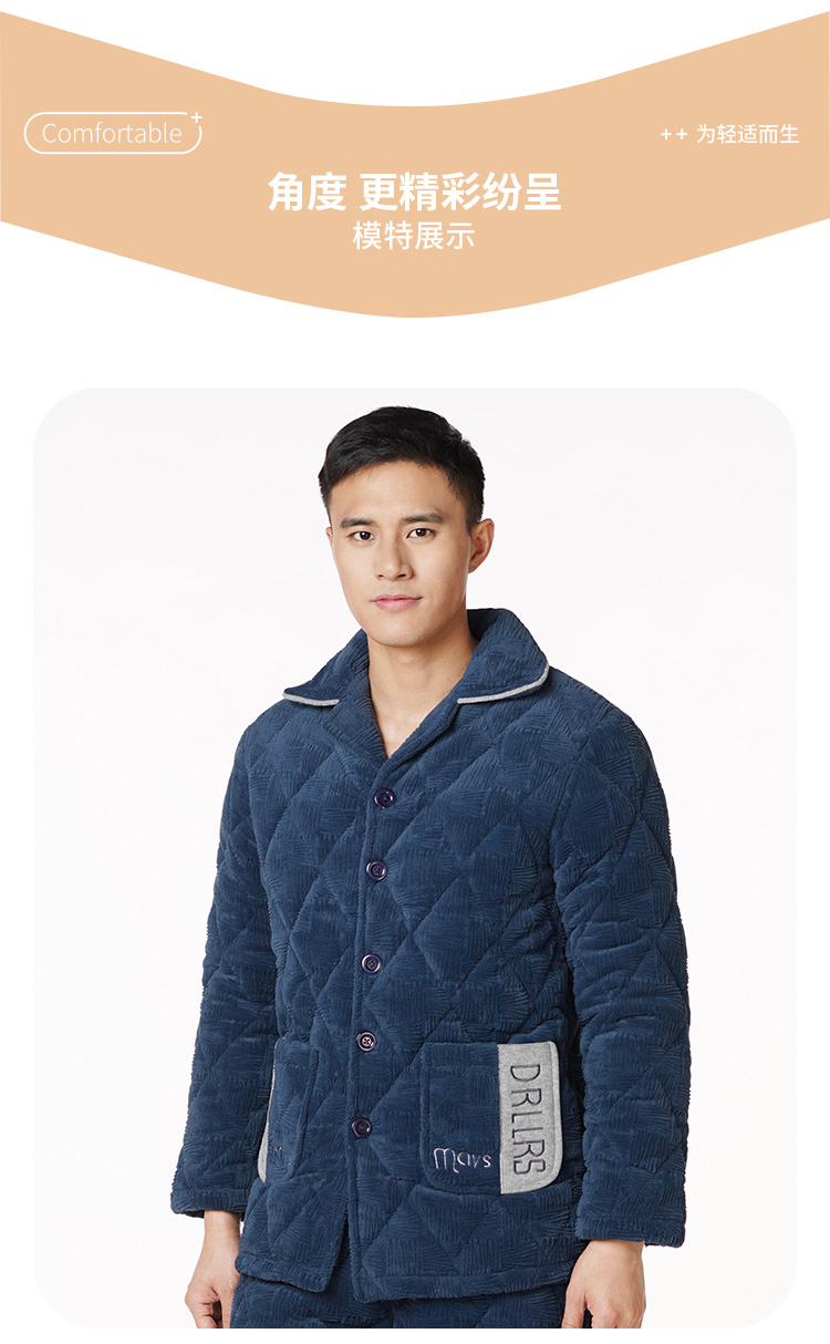 都市丽人都市锋尚生活家居男士加厚夹棉套装牛奶绒烂花夹棉厚家居服长袖睡衣FH21J6
