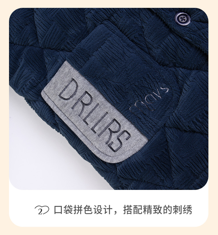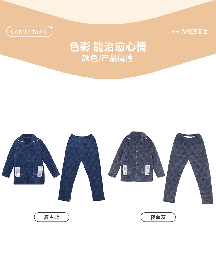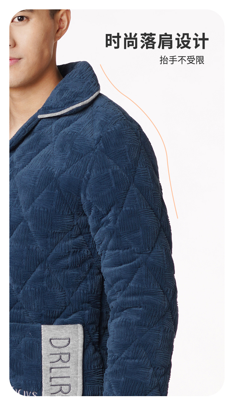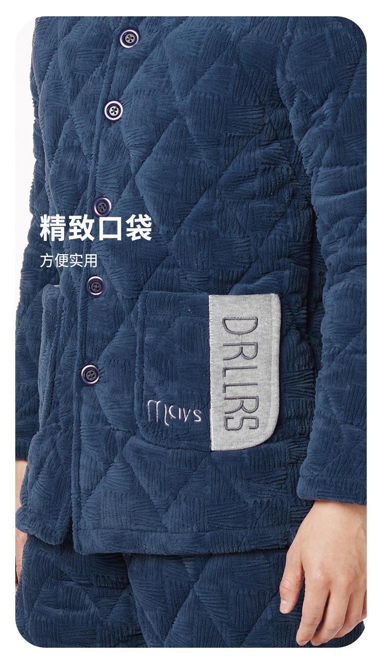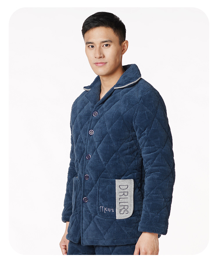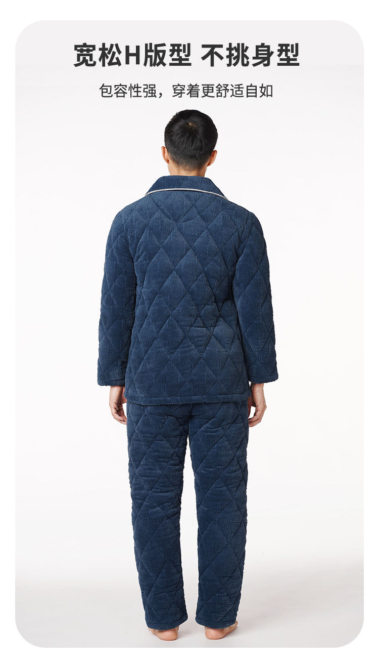 都市丽人都市锋尚生活家居男士加厚夹棉套装牛奶绒烂花夹棉厚家居服长袖睡衣FH21J6