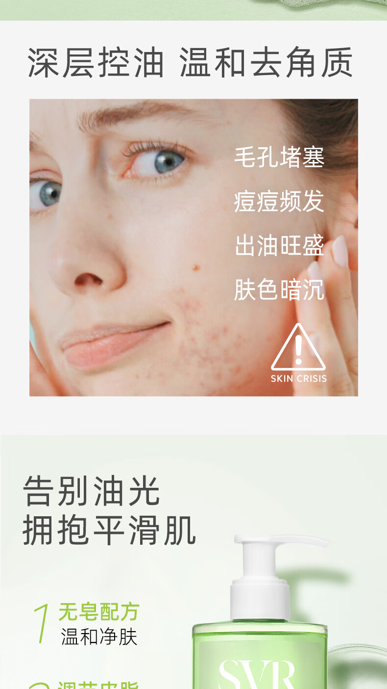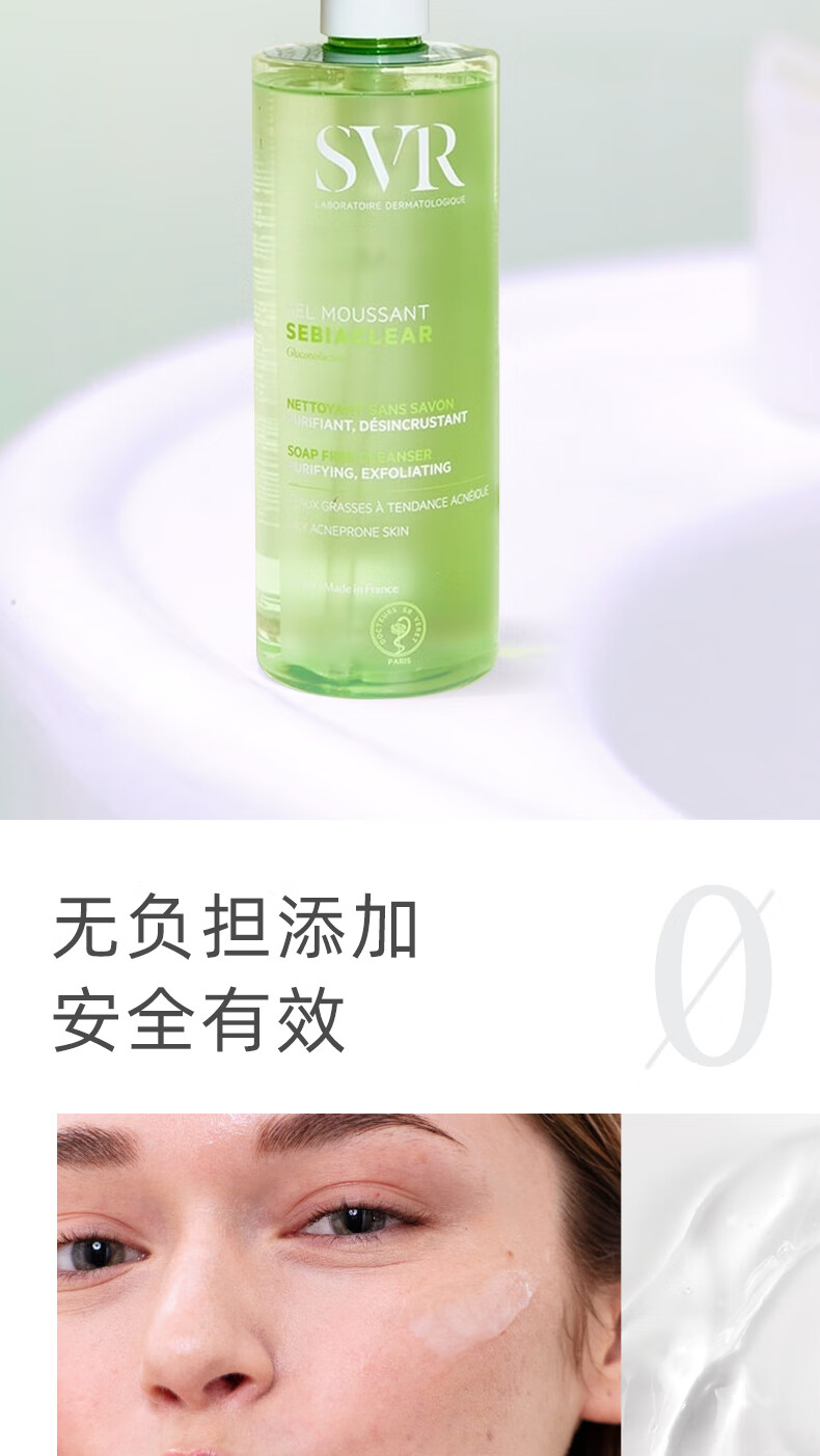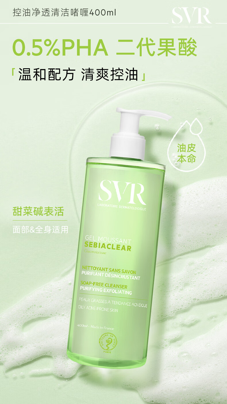 【买一送一】舒唯雅(SVR)植物清香清洁啫喱果酸净化毛孔控油净透温和暗沉400ml(26年7月)