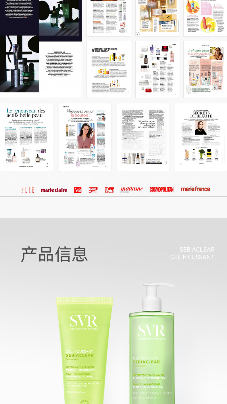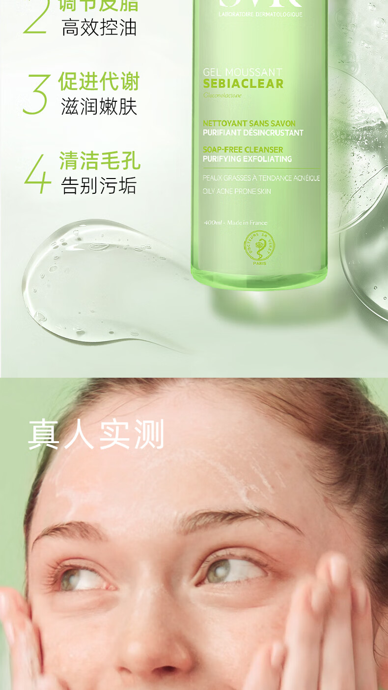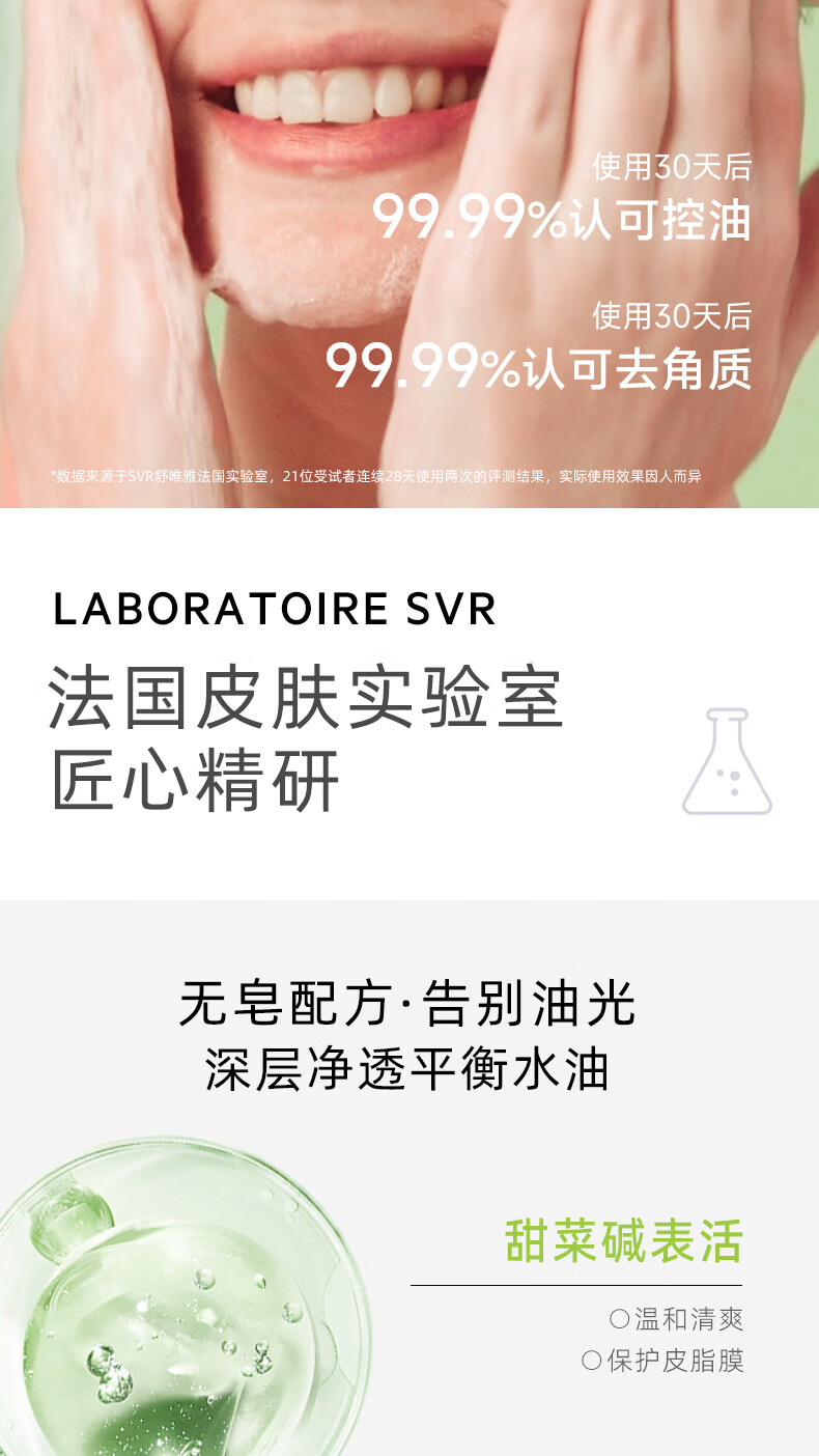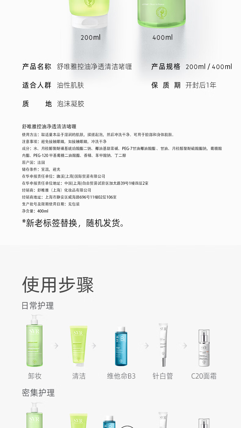 【买一送一】舒唯雅(SVR)植物清香清洁啫喱果酸净化毛孔控油净透温和暗沉400ml(26年7月)