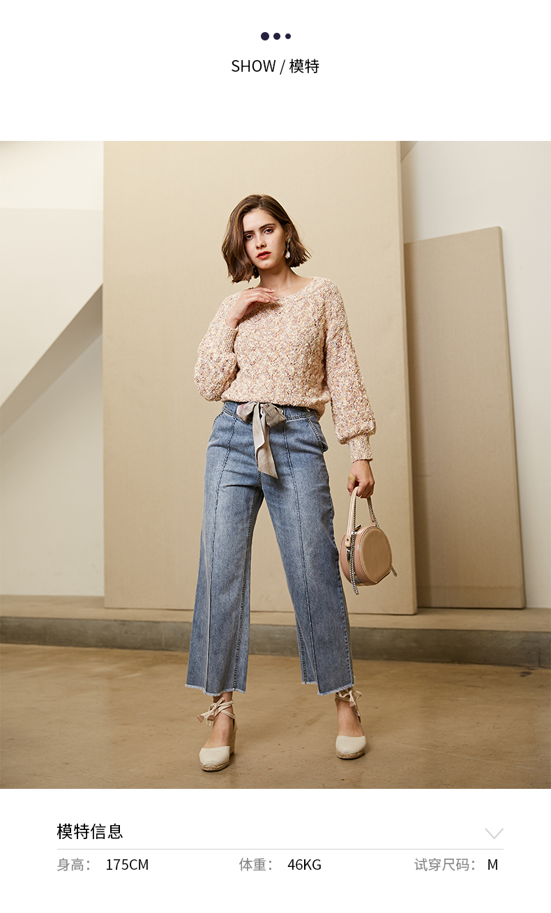 oldcolour休闲简约牛仔裤春季新款高腰直筒百搭九分裤女P13113142