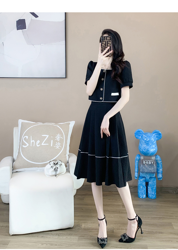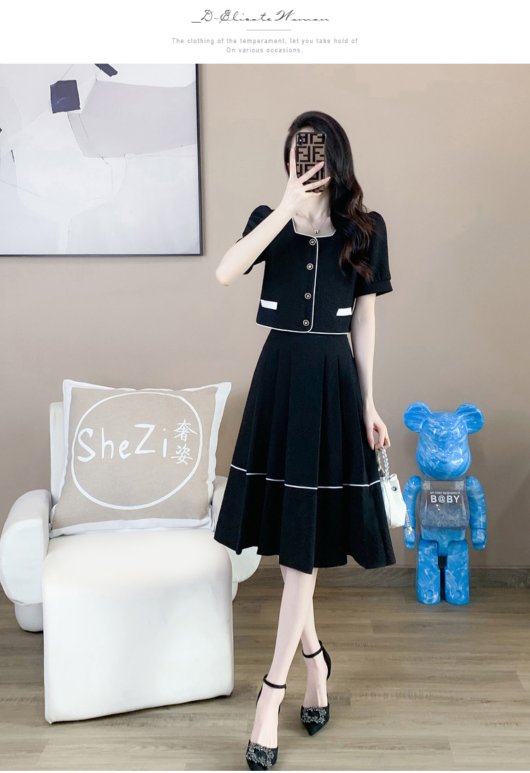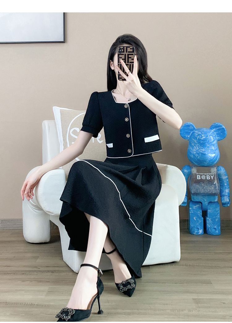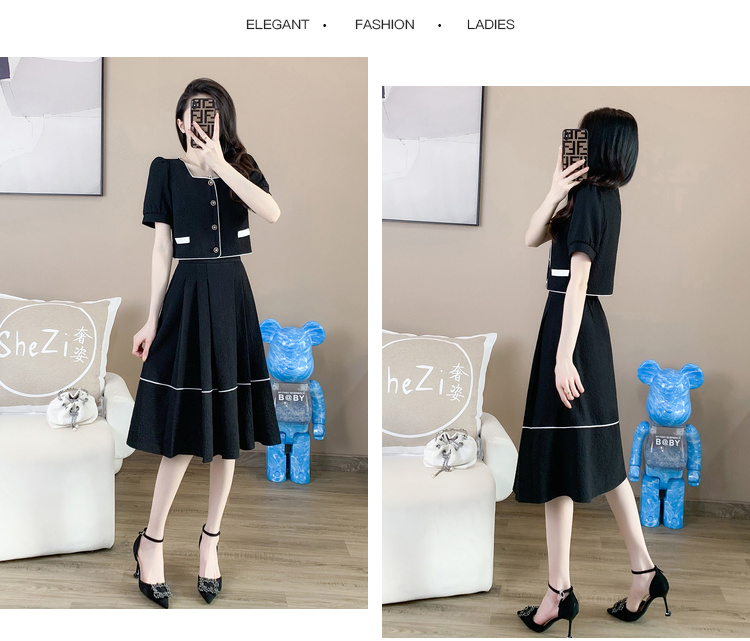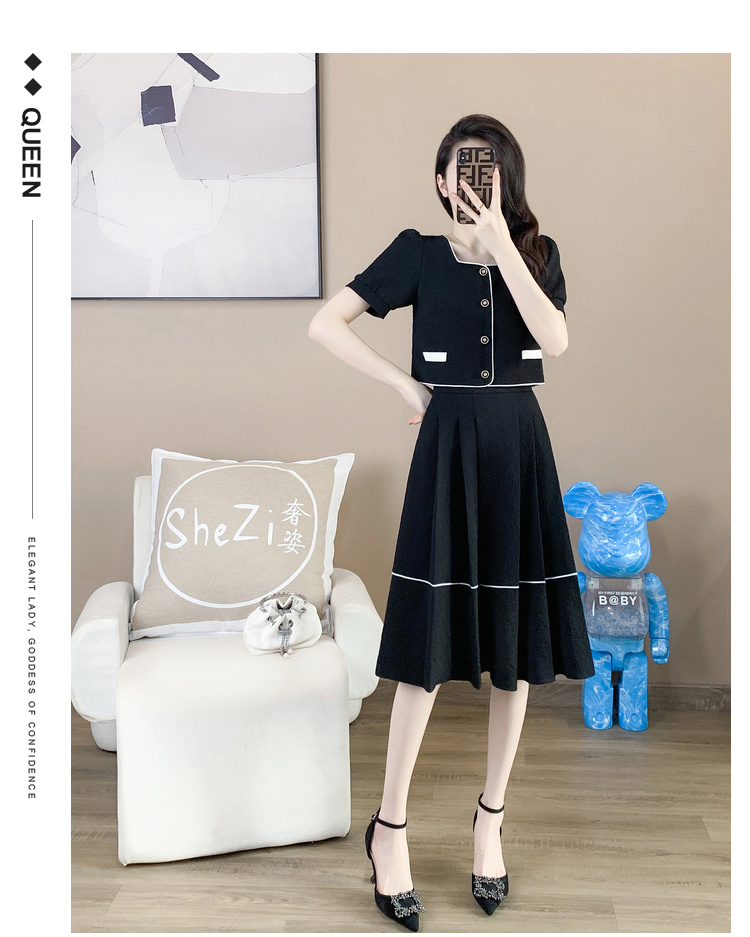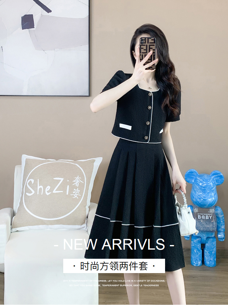 奢姿2025年夏季新款大码女装时尚方领两件套胖妹妹气质小香风套装9932990841