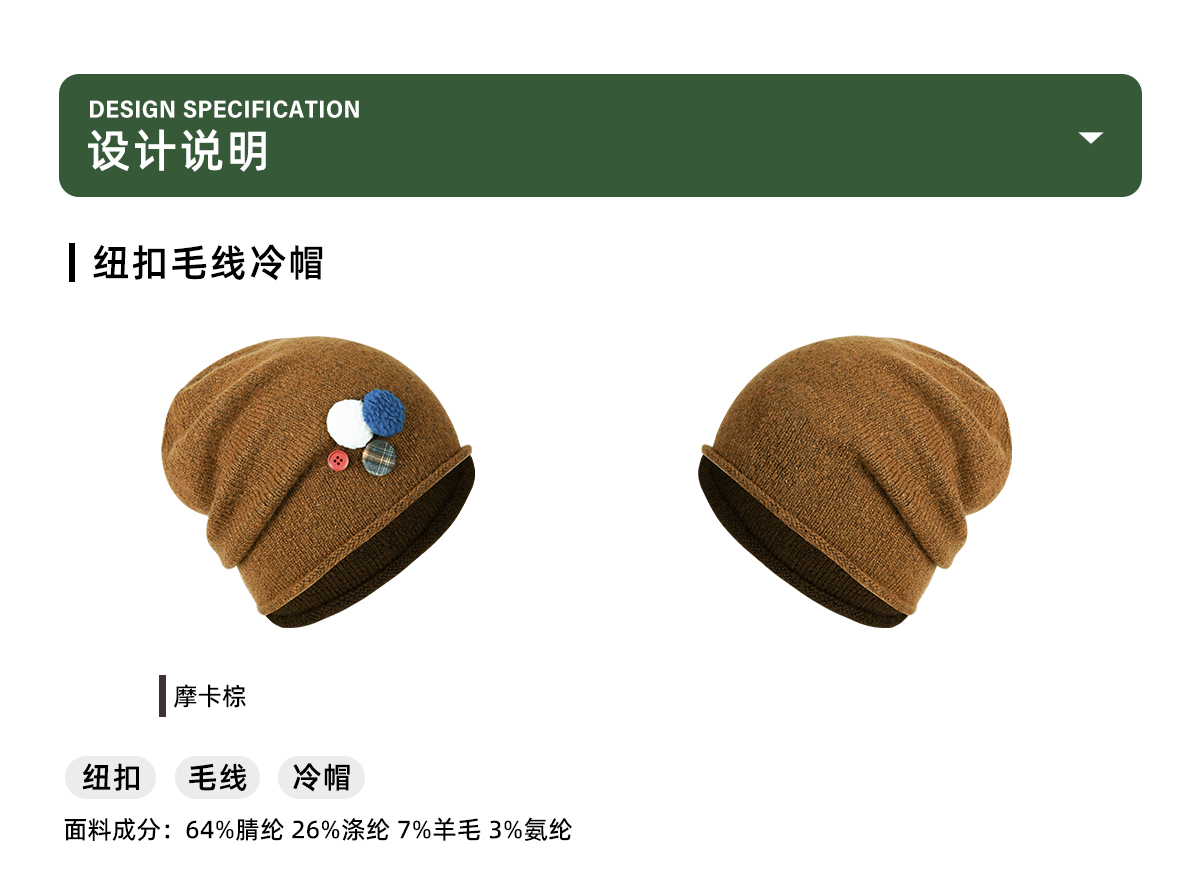 早乙女惠子saotome/STMMZ252332/纽扣毛线冷帽