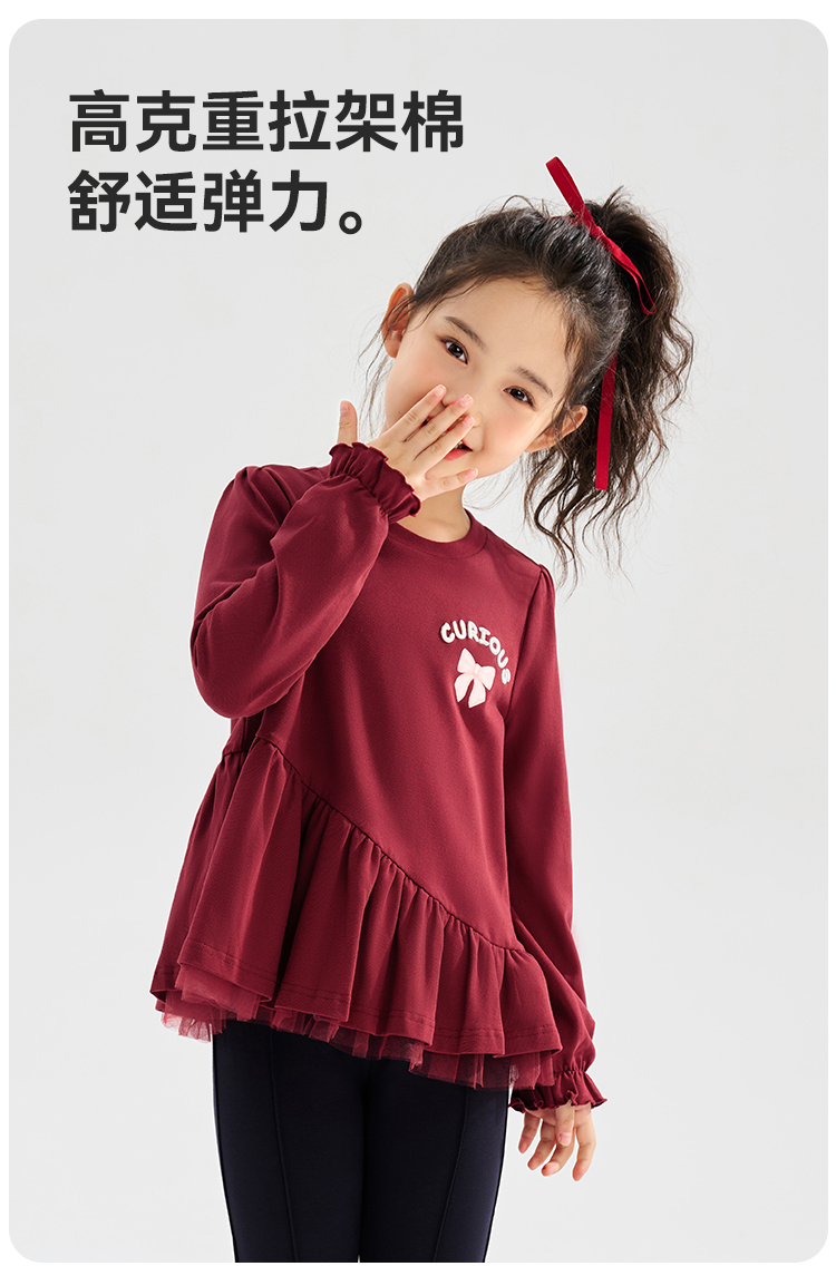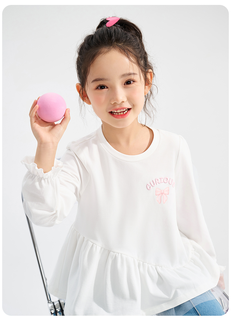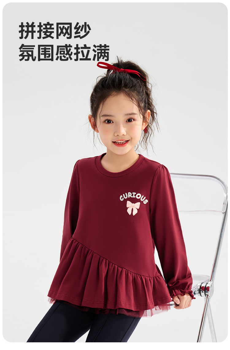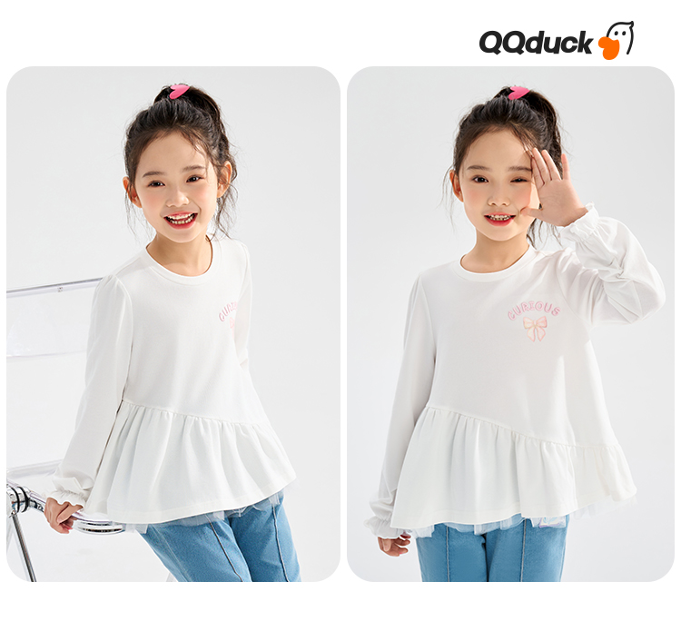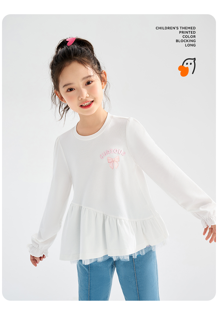 【清仓捡漏】【120-165】【可可鸭】女童春秋T恤网纱拼接甜美娃娃衫