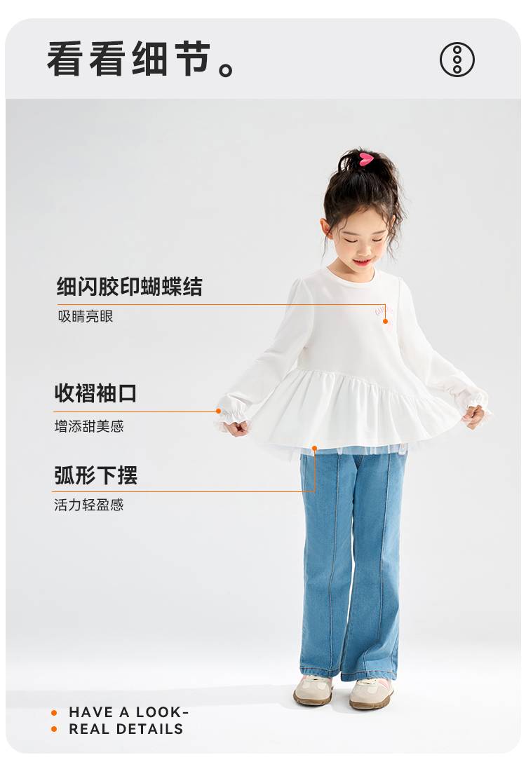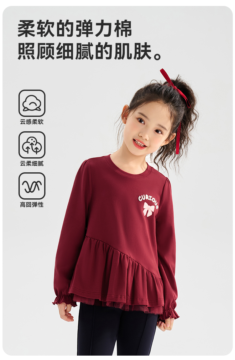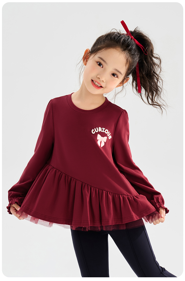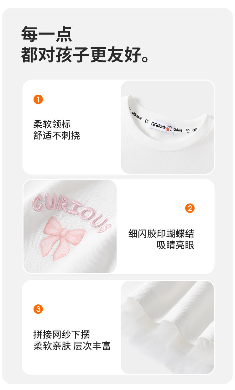 【清仓捡漏】【120-165】【可可鸭】女童春秋T恤网纱拼接甜美娃娃衫