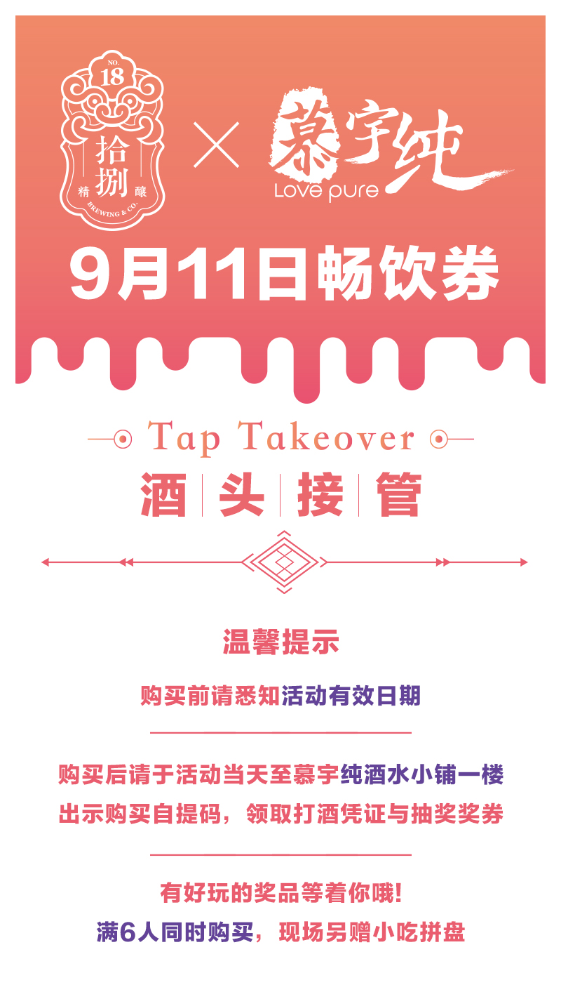 拾捌精酿×慕宇纯酒头接管9月11日畅饮票(单人)