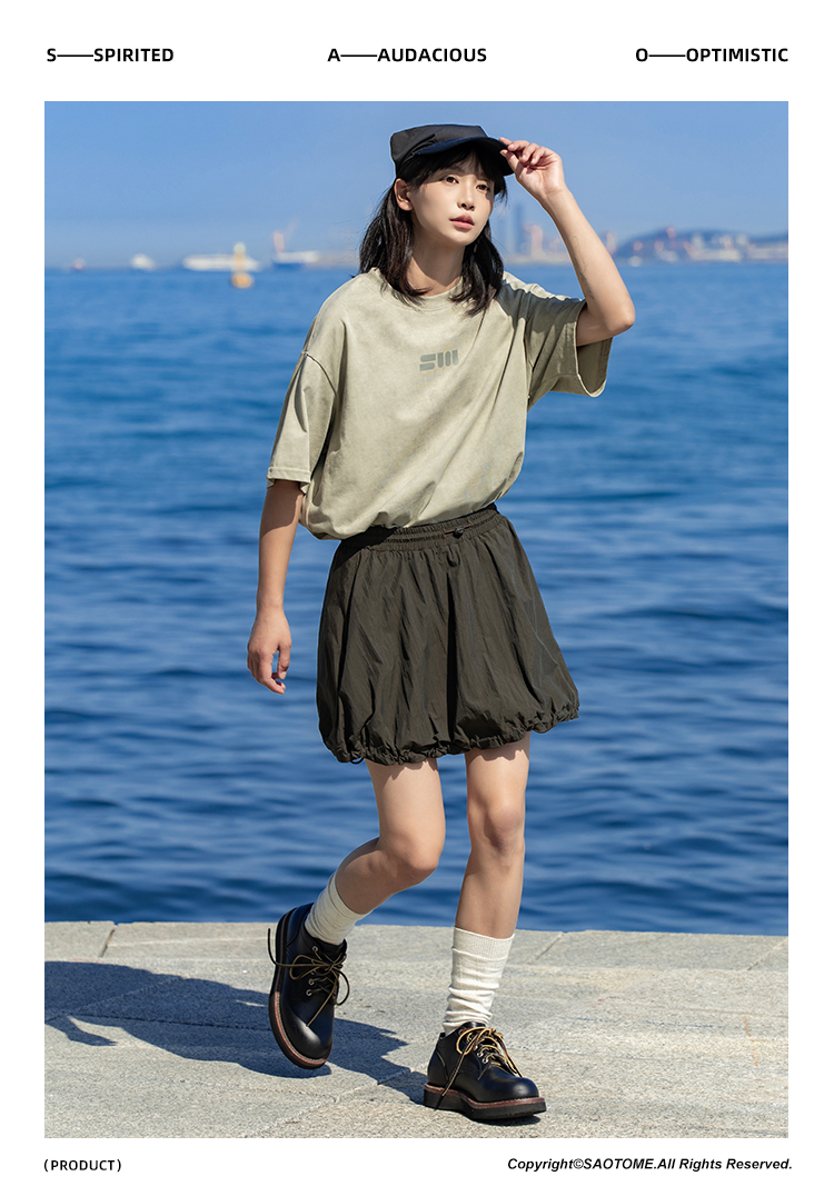 早乙女惠子saotome/STMQZ242109/户外感轻薄透气抽褶运动短裙半裙