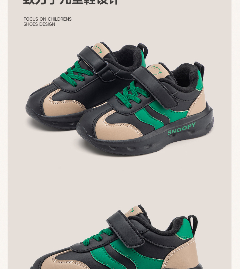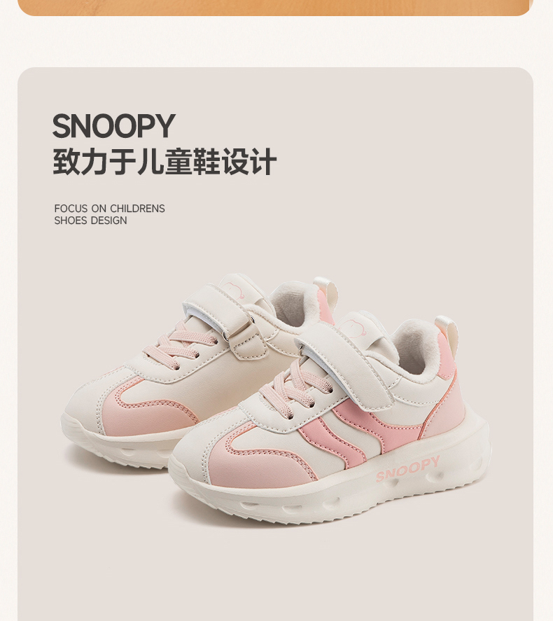 SNOOPY史努比童鞋冬季款儿童运动鞋男女童加绒保暖跑步鞋中大童软底鞋子27-38