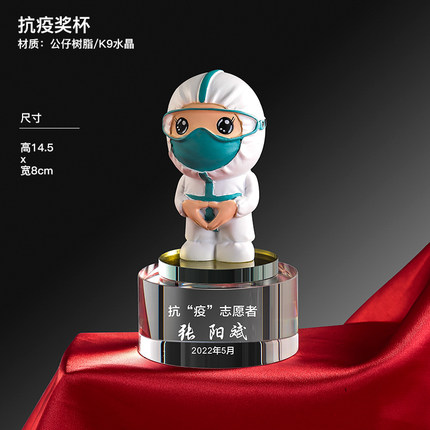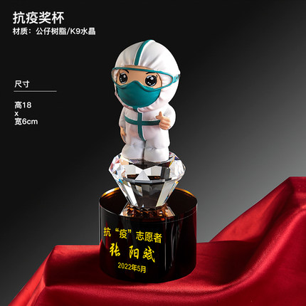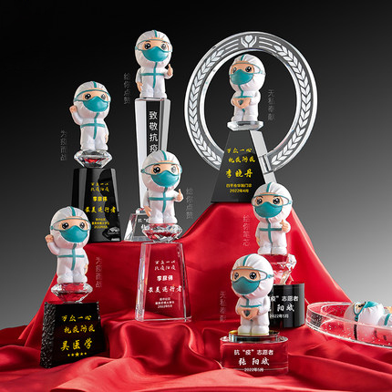 抗击疫情奖杯定制医护士志愿者奖牌定做高档纪念品抗疫荣誉留念品