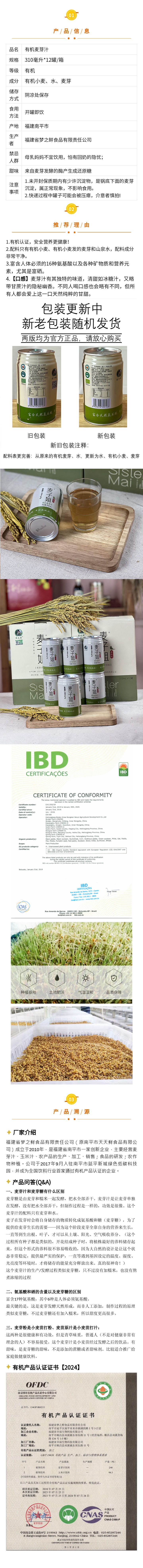 【积分换购】有机麦芽汁310毫升/罐*6罐/箱*2份(发酵型 富含氨基酸)| 福建南平梦之鲜 A-2804