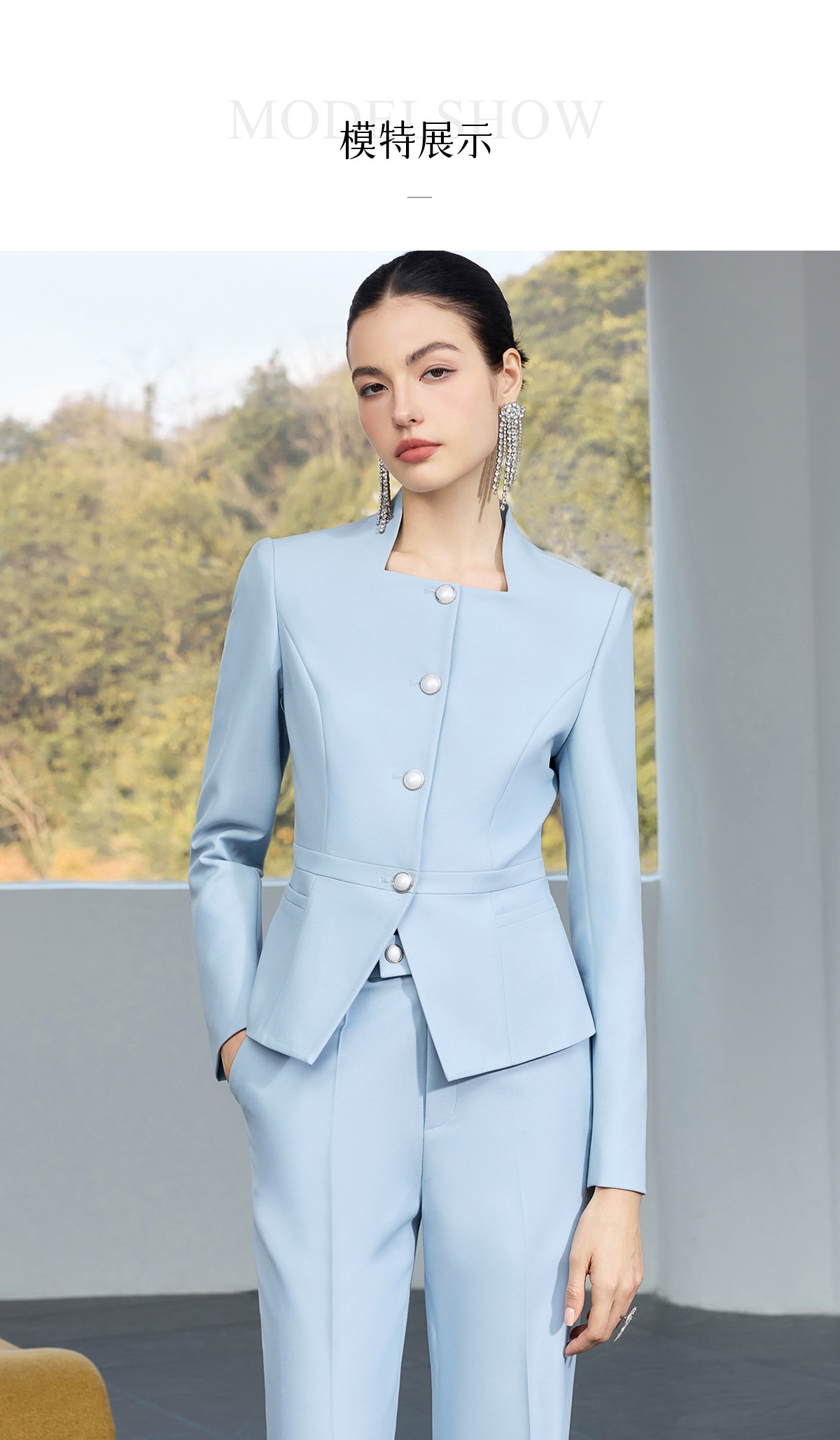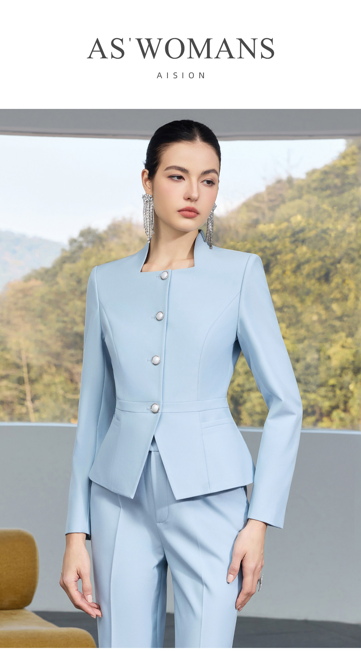 IWY/浅蓝色长袖西装套装女春季新款修身显瘦高级感职业装工作服25CP937