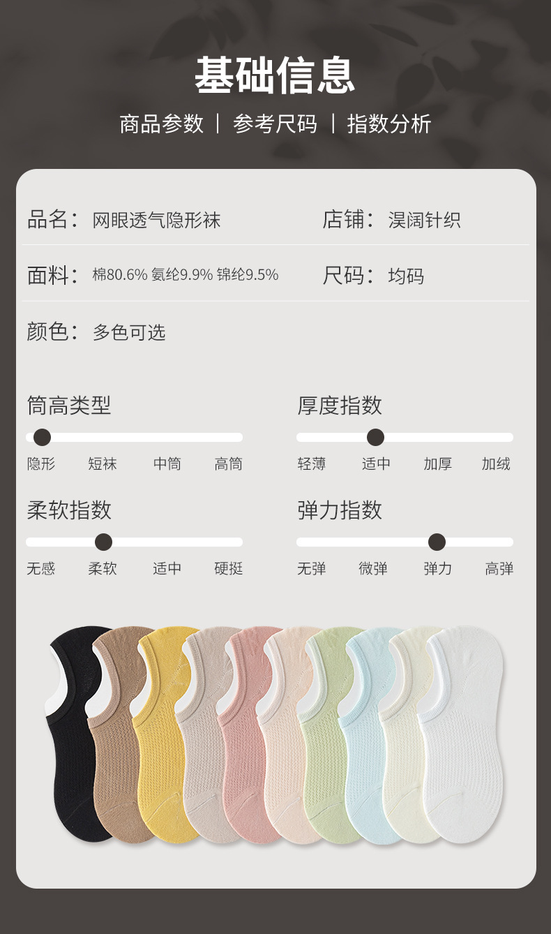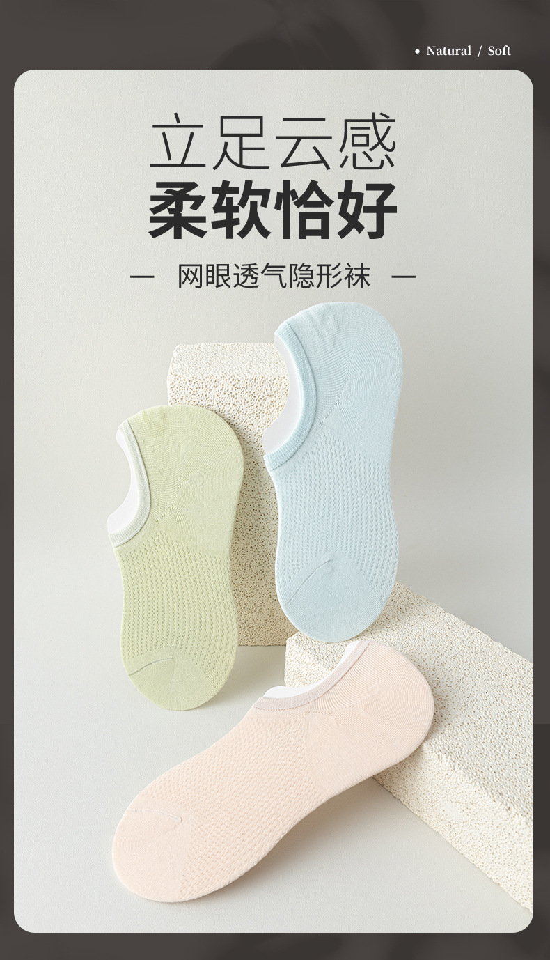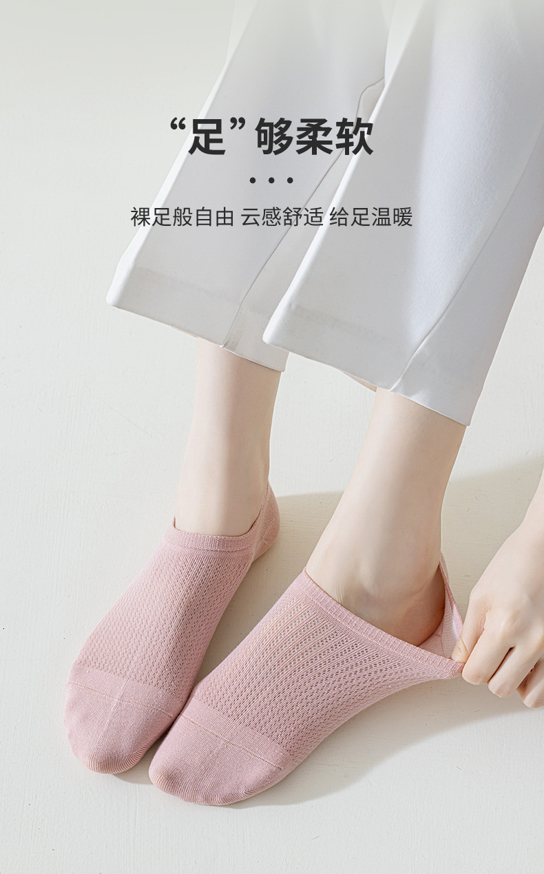 【网眼透气隐形袜】袜子女薄款隐形袜 春夏女士网眼透气棉袜 日系纯色硅胶防掉跟船袜。ry